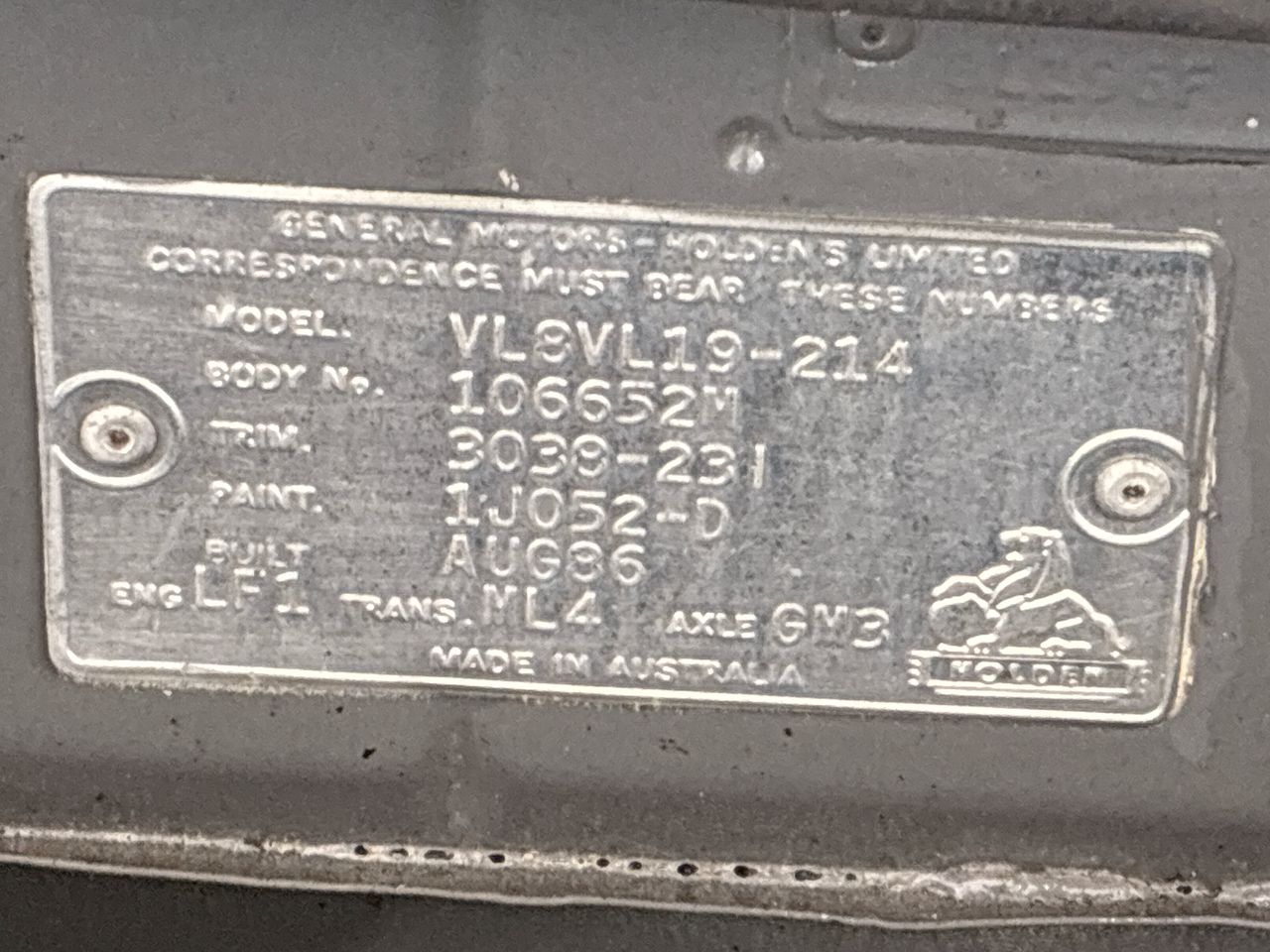 1986 Holden Commodore Manual Sedan