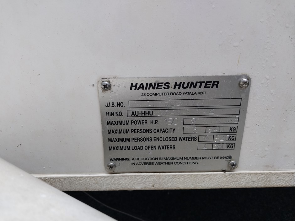 Please Note:The data form (if attached below the description in the lot) is a guide only. The assets are not driven or tested and description is based on walk around at the time of listing only. If engine is listed as turning over, this is based on a start-up only at the time of listing and has not been mechanically tested. There may be other damages, mechanical issues or body/hull/interior blemishes that have not been sighted or contained in the description at time of arrival or booking in. Therefore a full inspection is highly recommended prior to bidding.