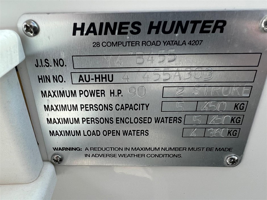 Part of Sale 2003 HAINES HUNTER 470 BREEZE
