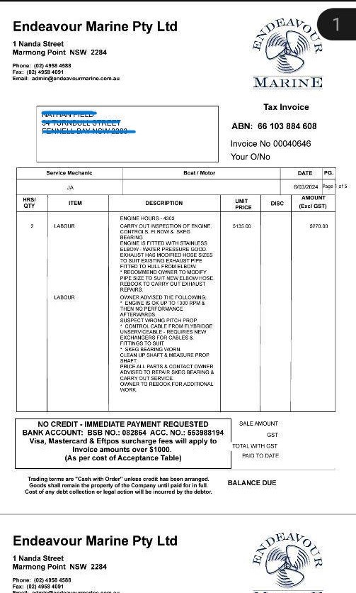 • Other Notes: Hard stand fees paid up to 5th April