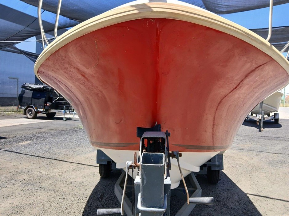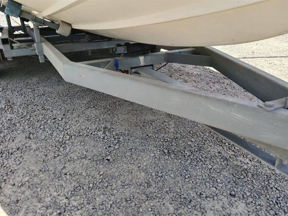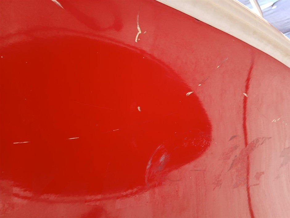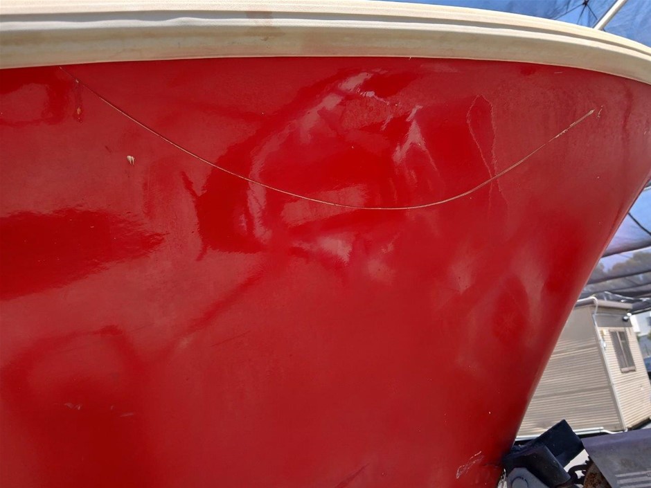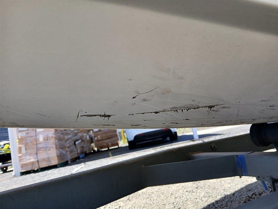 • Damage: Overall, general wear and tear. Boat. Exterior: Marks and scratches. Scratched paint. Interior: Unclean. Marks and scratches. Evidence of use. May be some unseen damgae. Trailer: Dents, rust, marks and scratches. Trailer plug, pins damaged. Rubber keel support, damaged [refer to images No. 52, 53, 54]