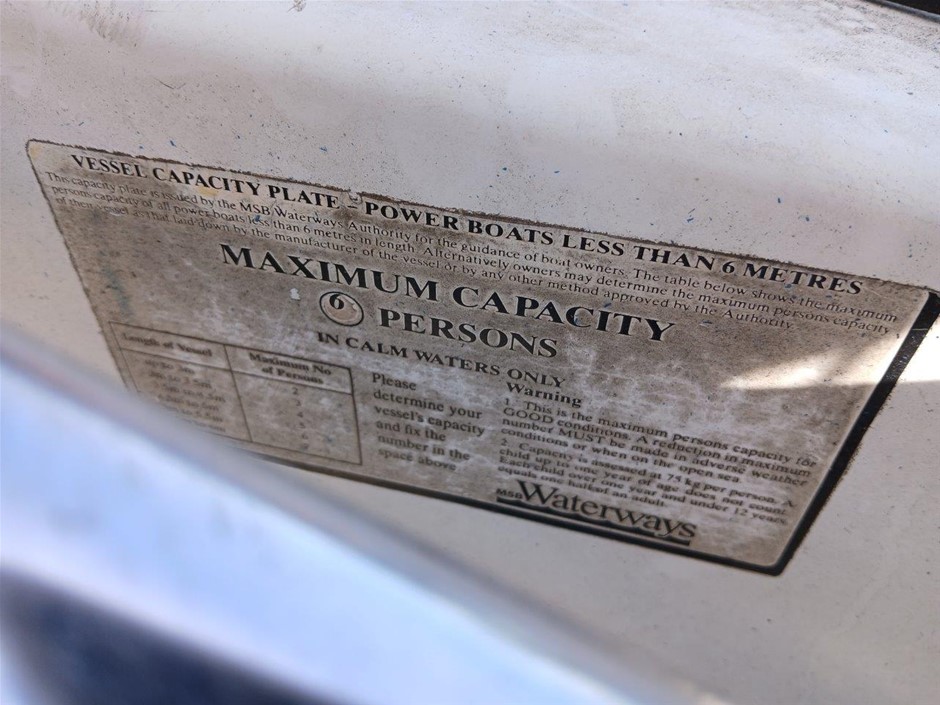 Please Note:The data form (if attached below the description in the lot) is a guide only. The assets are not driven or tested and description is based on walk around at the time of listing only. If engine is listed as turning over, this is based on a start-up only at the time of listing and has not been mechanically tested. There may be other damages, mechanical issues or body/hull/interior blemishes that have not been sighted or contained in the description at time of arrival or booking in. Therefore a full inspection is highly recommended prior to bidding.