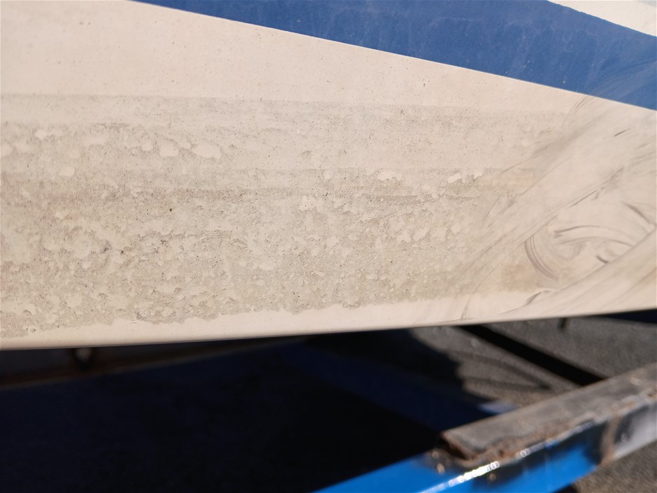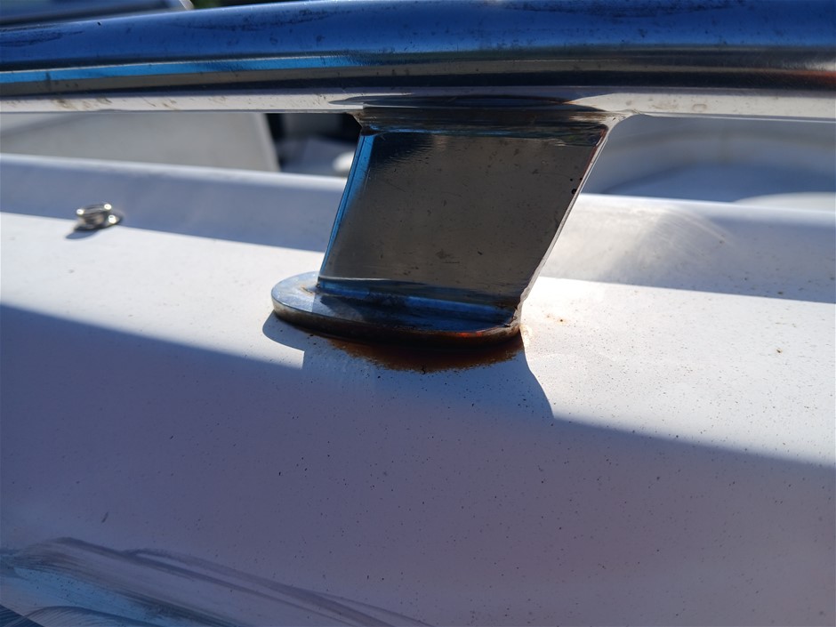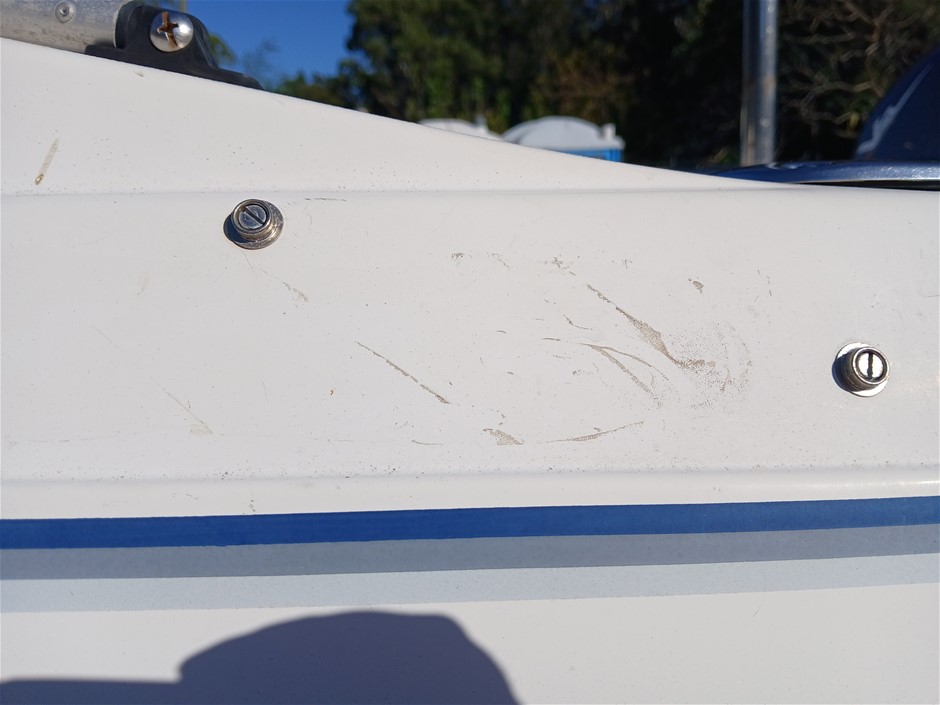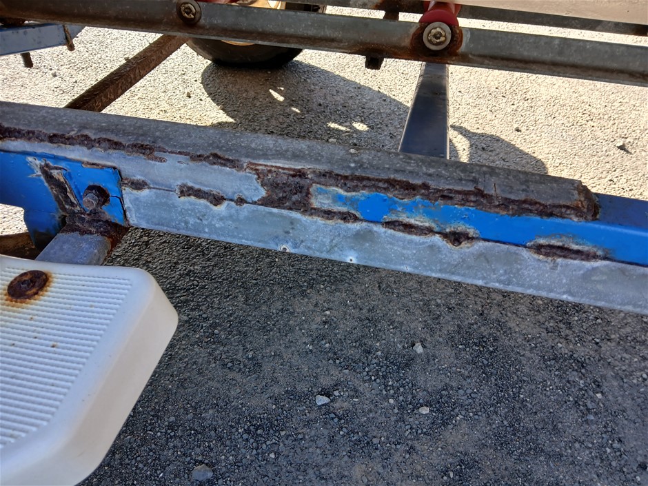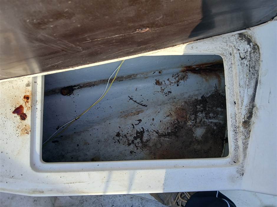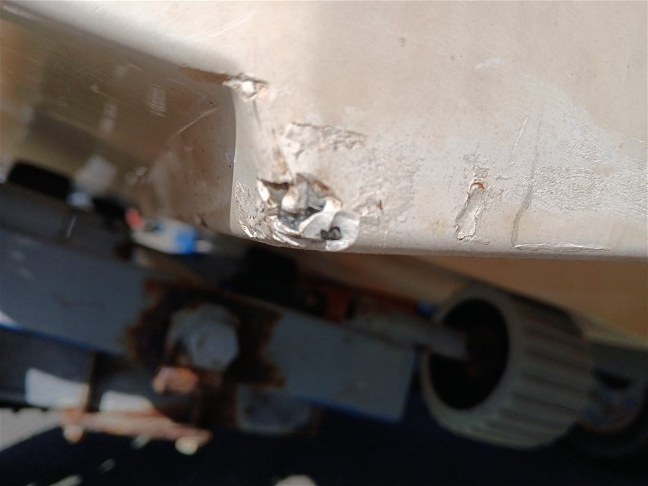 • Other Comments: Boat exterior: Dents, surface rust, scrapes, scuff marks and scratches. Some discolouring. Chipped paint. Boat interior: In poor condition, exposed to elements. Mould, dents, surface rust, scrapes, scuff marks and scratches. Upholstery has mould, rips, marks and scratches. Centre floor compartment, right side is not stable, loose screws and rotting floor, walk with caution. Storage compartments rotting. Trailer: Rust, corrosion, dents, scrapes, scuff marks and scratches. Jockey wheel significantly damaged. No trailer plug. No R pin. No rear lights. No reflectors.