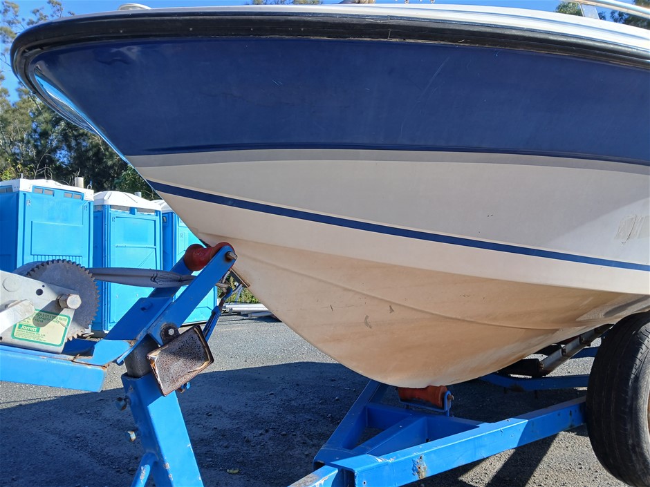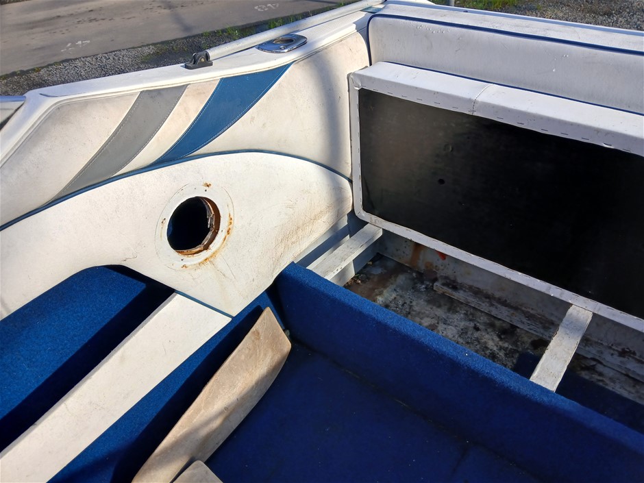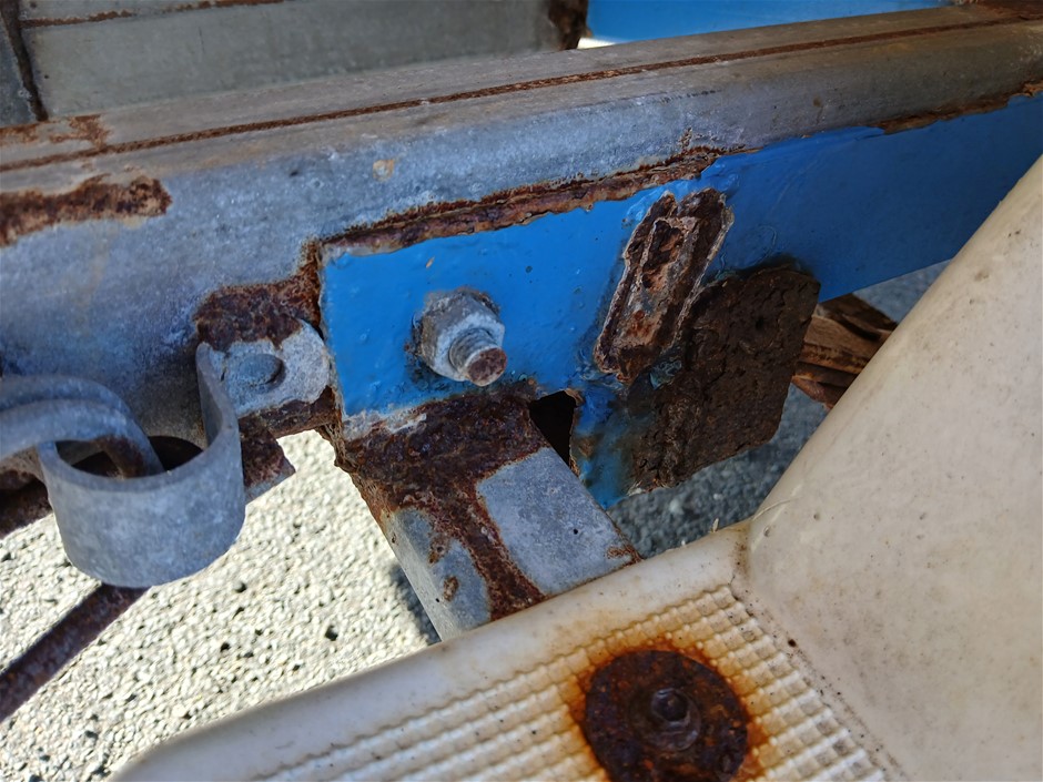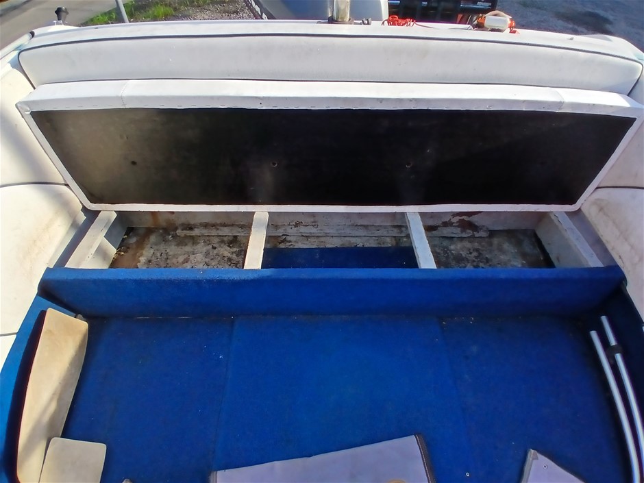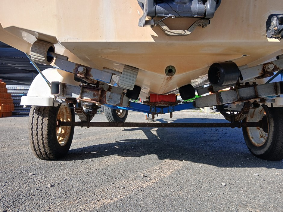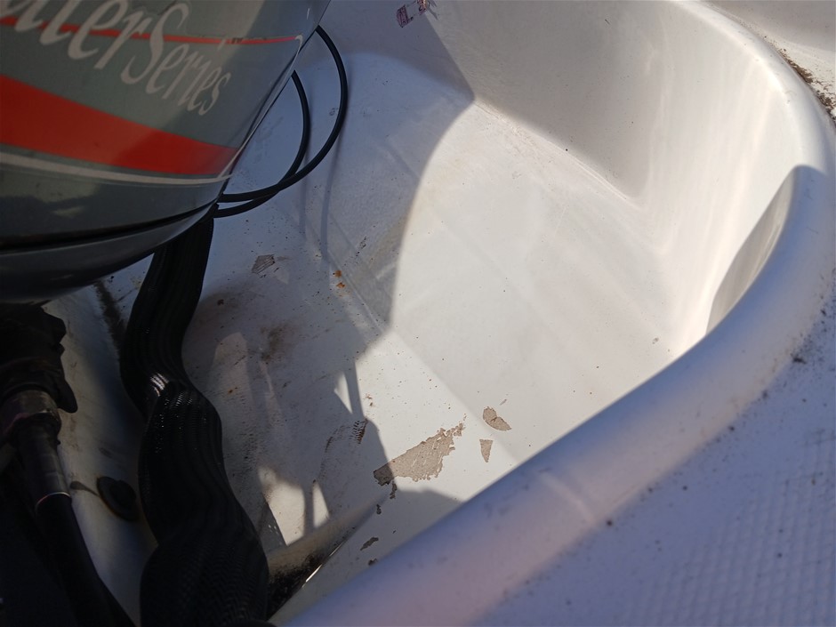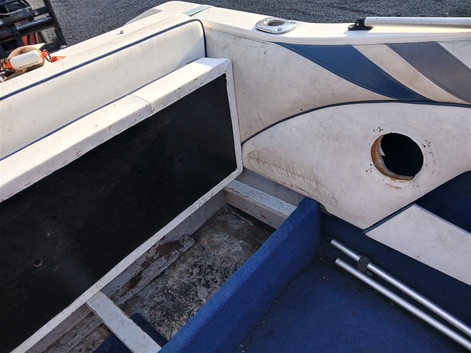 • Other Comments: Boat exterior: Dents, surface rust, scrapes, scuff marks and scratches. Some discolouring. Chipped paint. Boat interior: In poor condition, exposed to elements. Mould, dents, surface rust, scrapes, scuff marks and scratches. Upholstery has mould, rips, marks and scratches. Centre floor compartment, right side is not stable, loose screws and rotting floor, walk with caution. Storage compartments rotting. Trailer: Rust, corrosion, dents, scrapes, scuff marks and scratches. Jockey wheel significantly damaged. No trailer plug. No R pin. No rear lights. No reflectors.