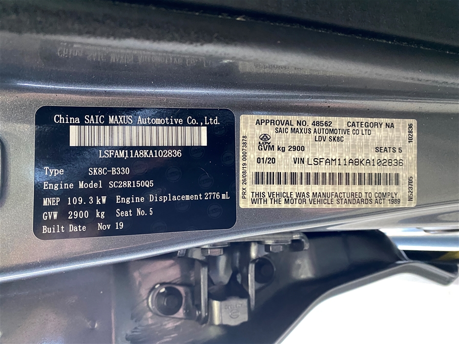 2019 LDV T60 LUXE MEGA TUB Turbo Diesel Automatic Dual Cab