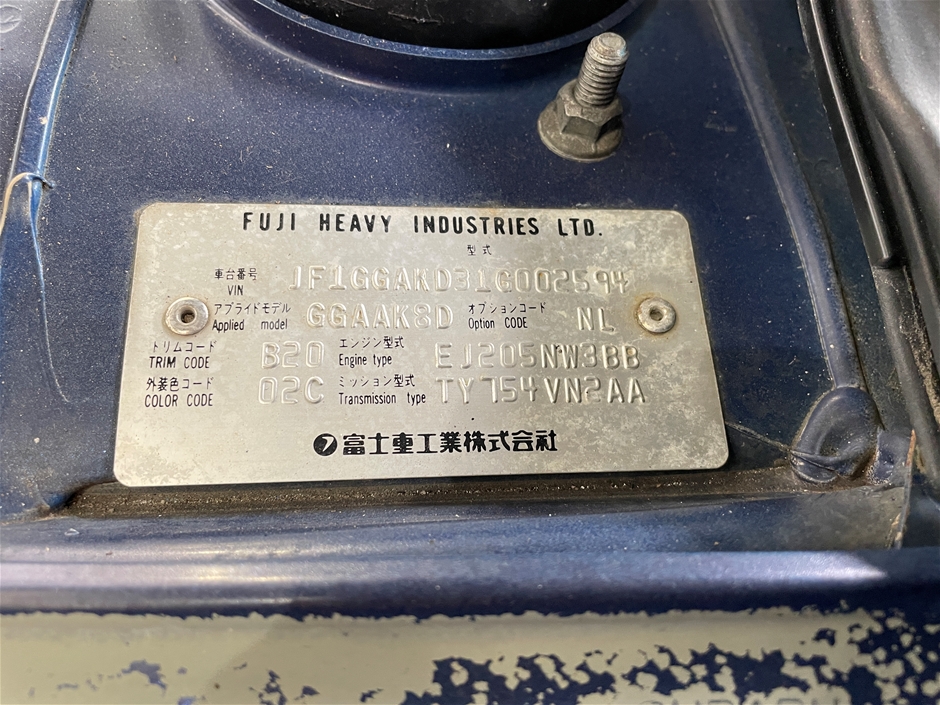 • VIN: JF1GGAKD31G002594