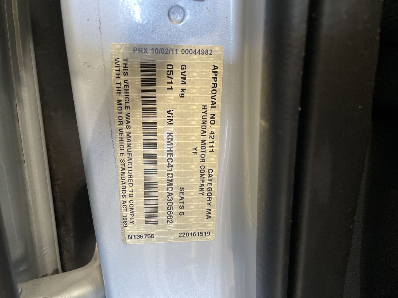 (SN:KMHEC41DMCA305662)