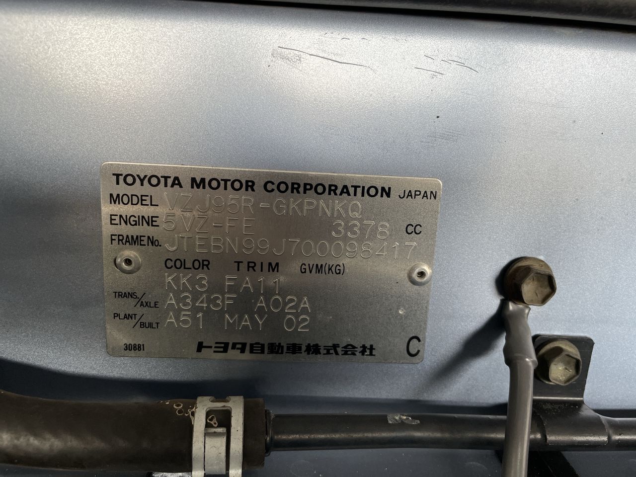 • VIN: JTEBN99J700098417
