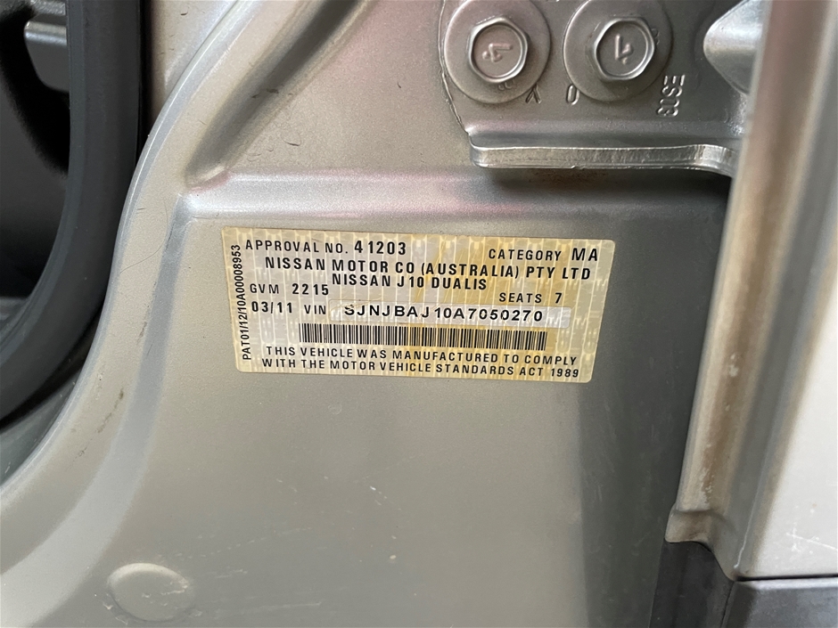 Part of Sale 2011 Nissan Dualis Ti +2 J10 II CVT 7 Seats Wagon