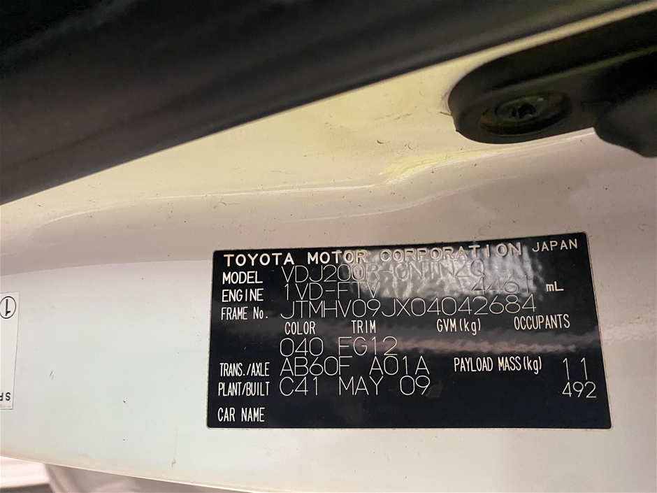 | Part of Sale | 2009 Toyota Landcruiser GXL VDJ200R T/Dsl Auto | ||||||||||||||