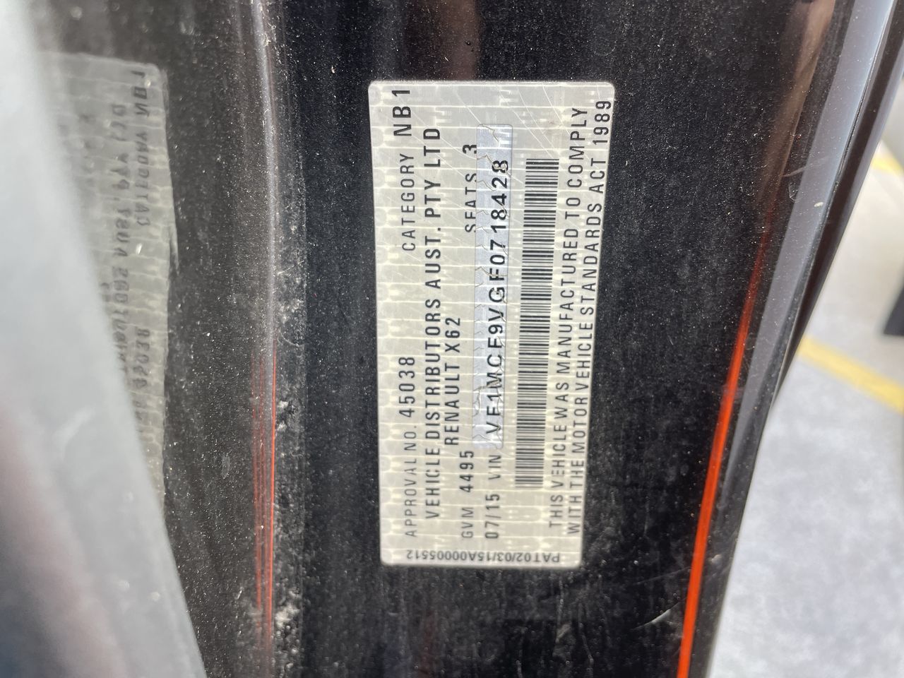 (SN:VF1MCF9VGF0718428)