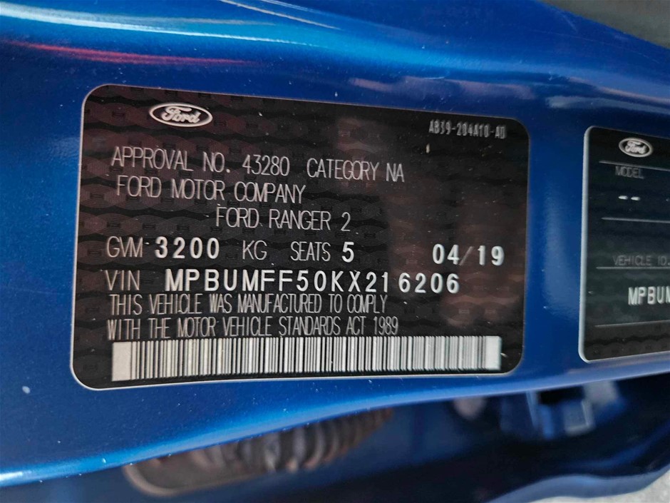 Part of Sale 2019 XLT Ford Ranger Dual Cab Ute