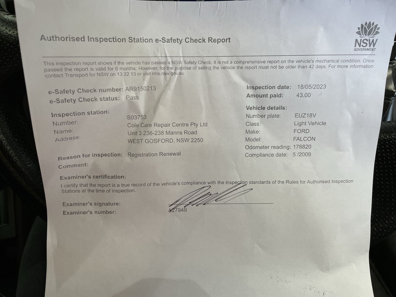• Vehicle inspection is available at the dates and times stated above or phone New South Wales Auto Team on