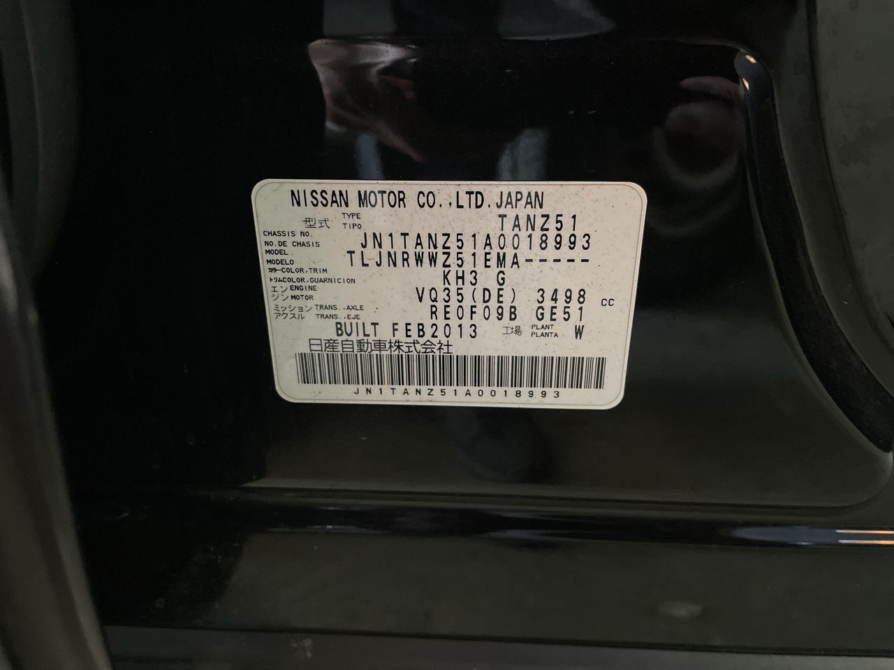 • VIN: JN1TANZ51A0018993