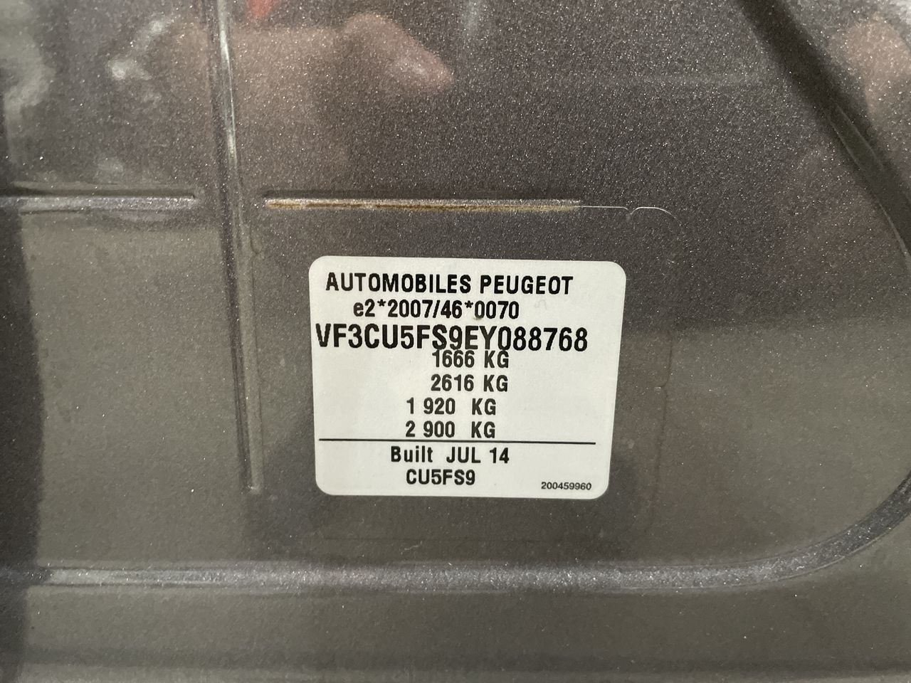 (SN:VF3CU5FS9EY088768) (302301-1)