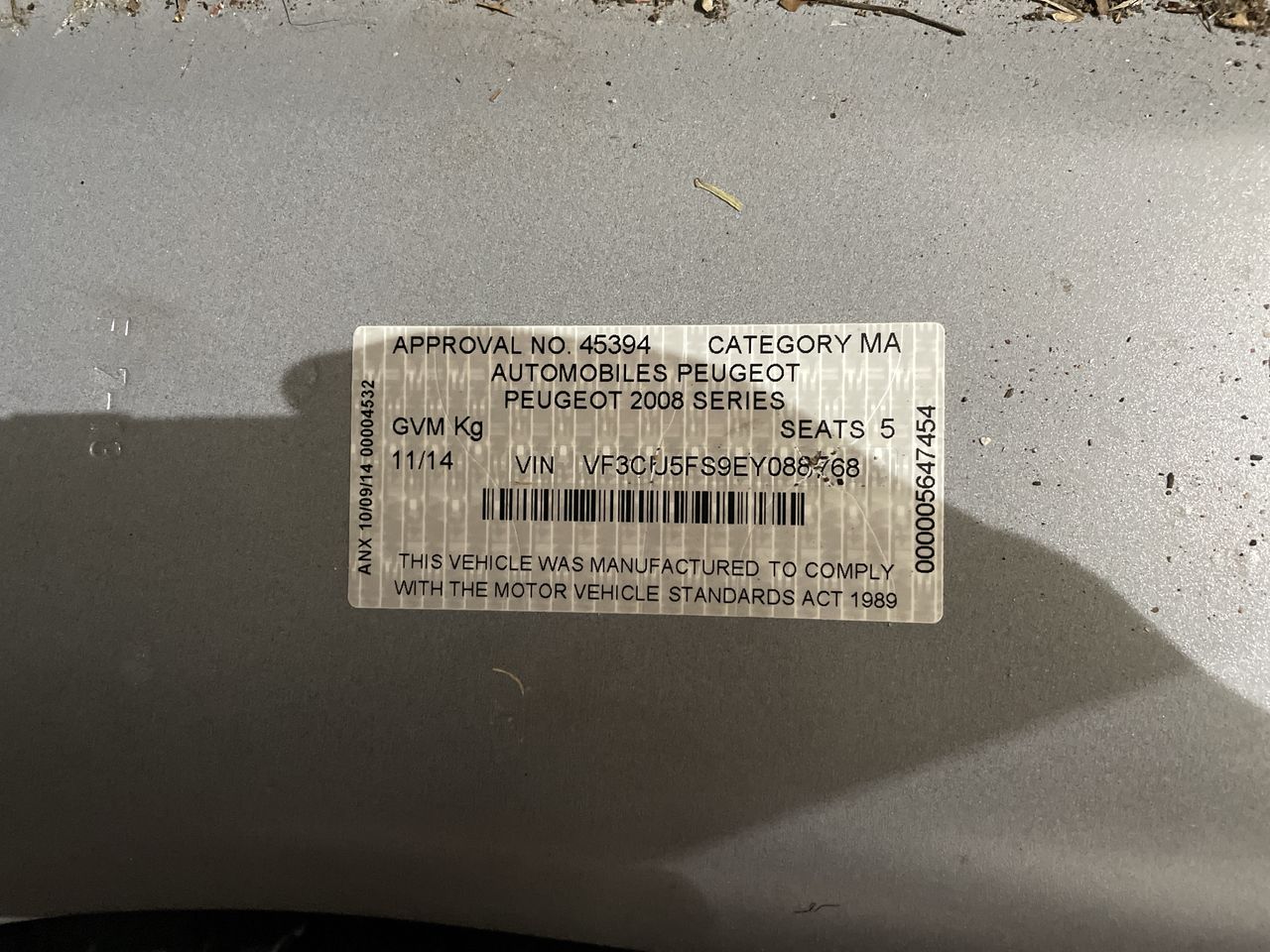| Part of Sale | 2014 Peugeot 2008 Active Automatic Wagon | ||||||||||||||