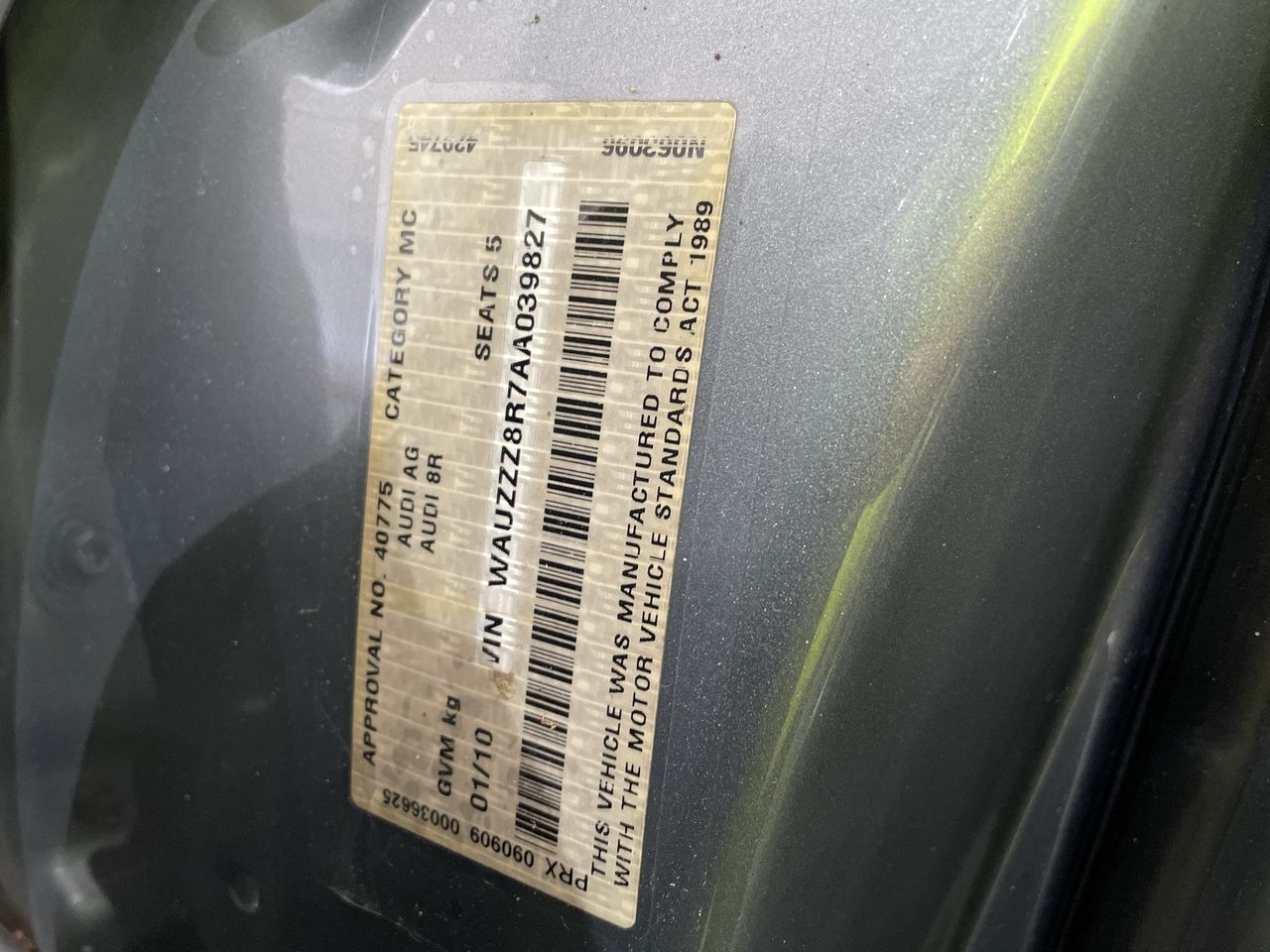 (SN:WAUZZZ8R7AA039827) (273533-1131)