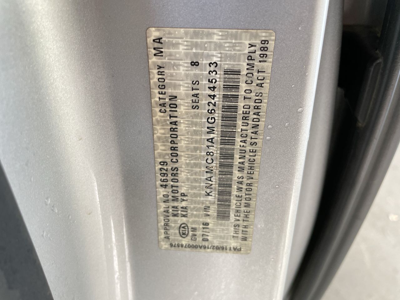 2016 Kia Carnival Platinum YP Turbo Diesel Automatic 8 Seats People Mover WOVR – INSPECTED