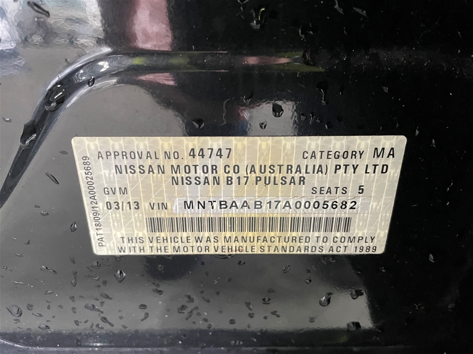 Part of Sale 2013 Nissan Pulsar ST B17 CVT Sedan