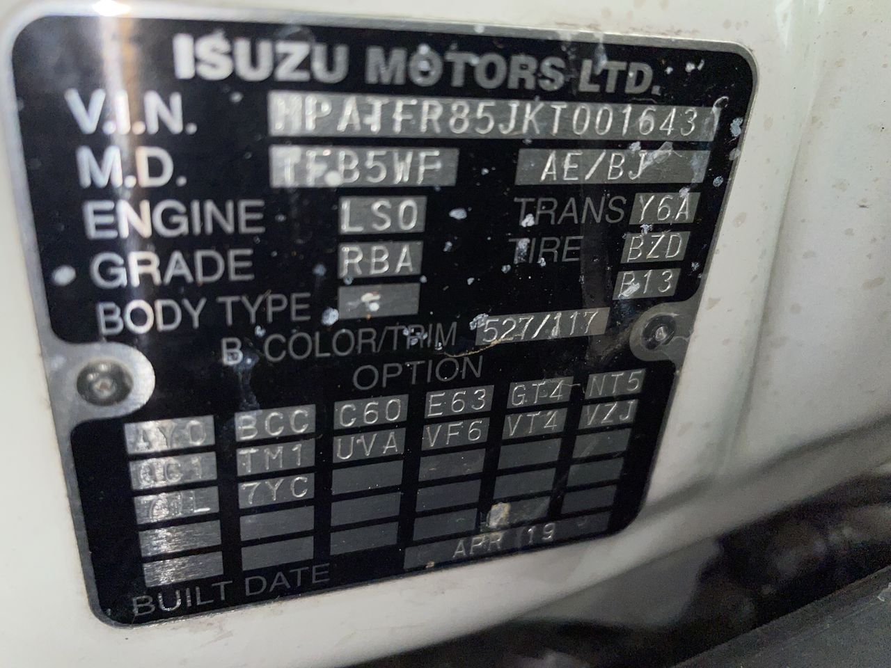 • VIN: MPATFR85JKT001643