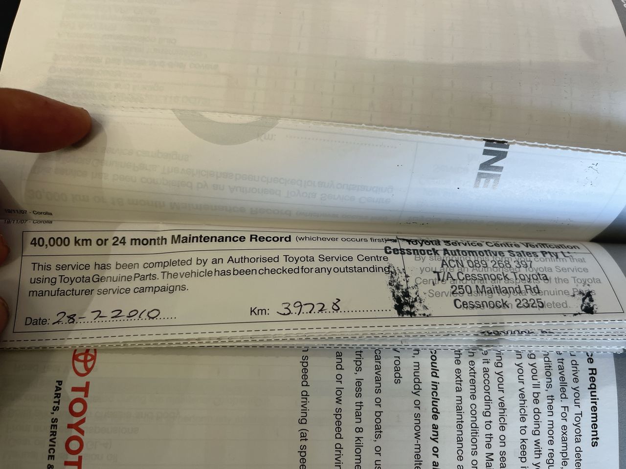 • Service History: Yes