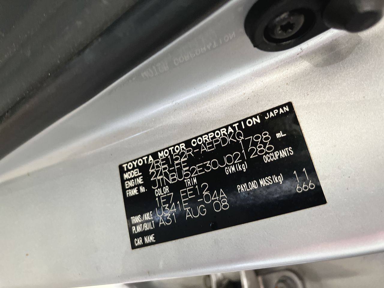 • VIN: JTNBU52E30J021286