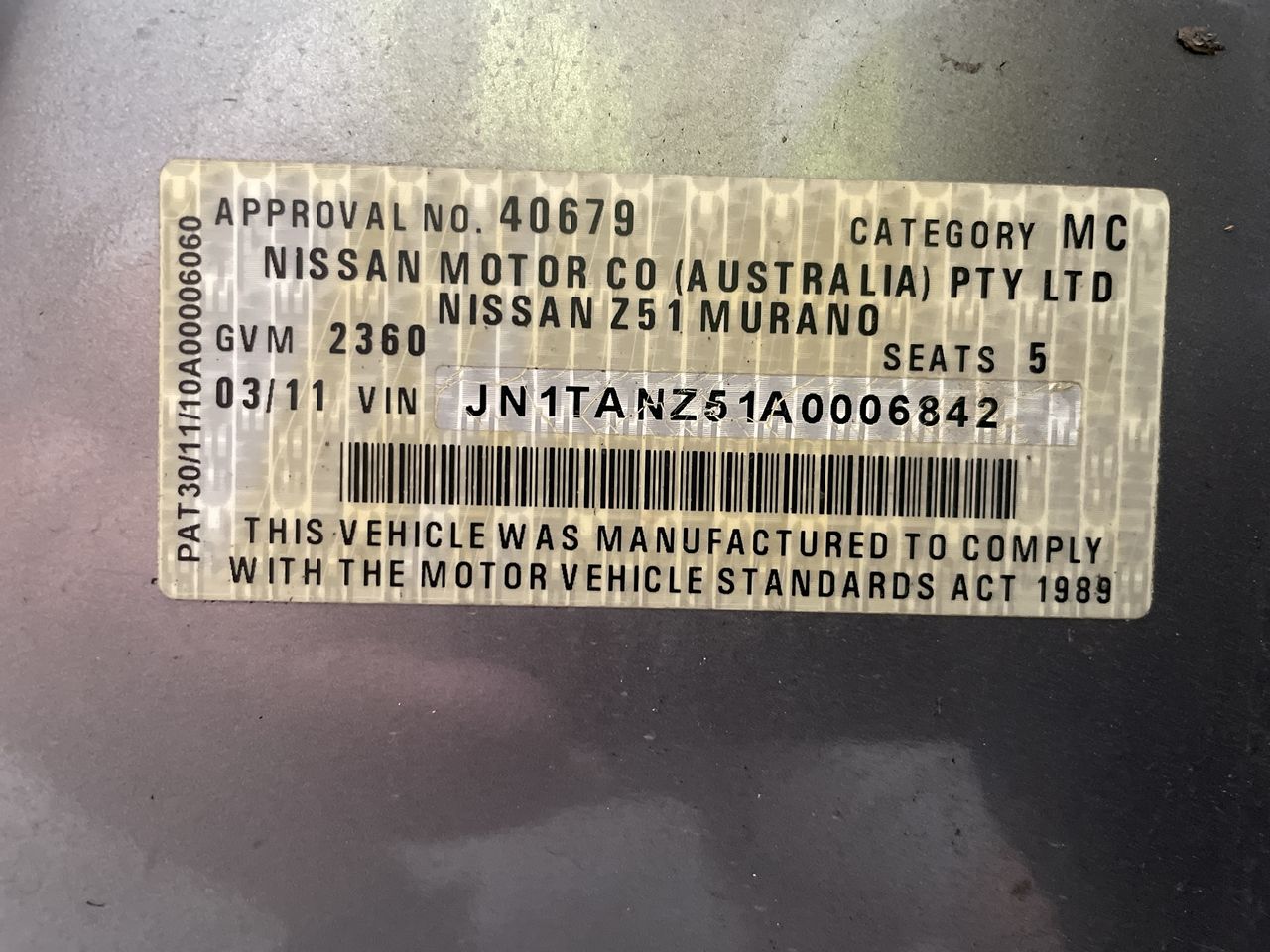 | Part of Sale | 2011 Nissan Murano ST Z51 CVT Wagon | ||||||||||||||||