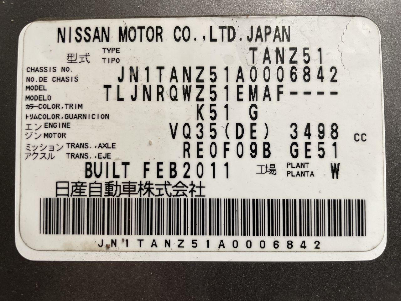 (SN:JN1TANZ51A0006842) (298842-18)