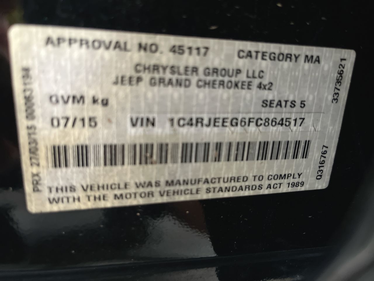 (SN:1C4RJEEG6FC864517) (306567-1)