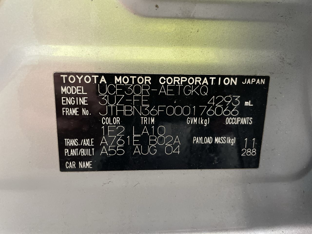 • VIN: JTHBN36F000176066