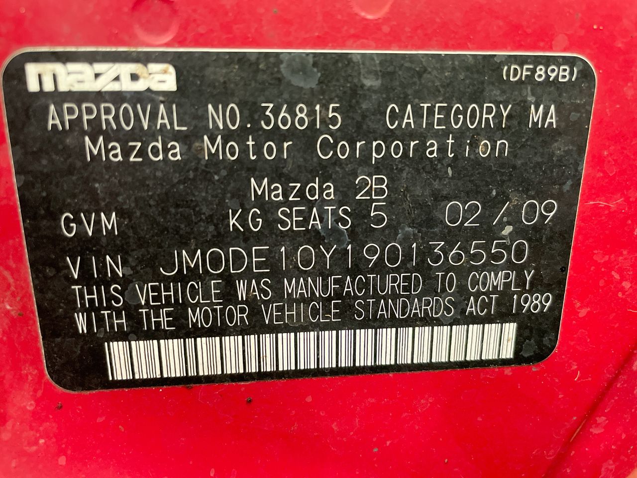 • VIN: JM0DE10Y190136550