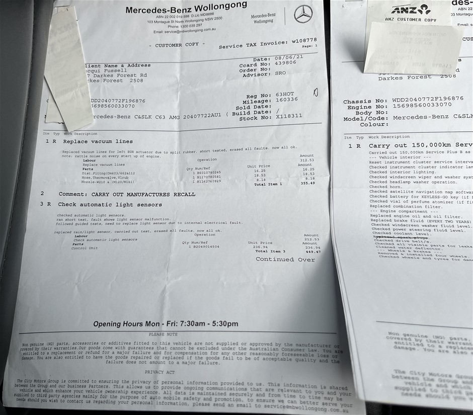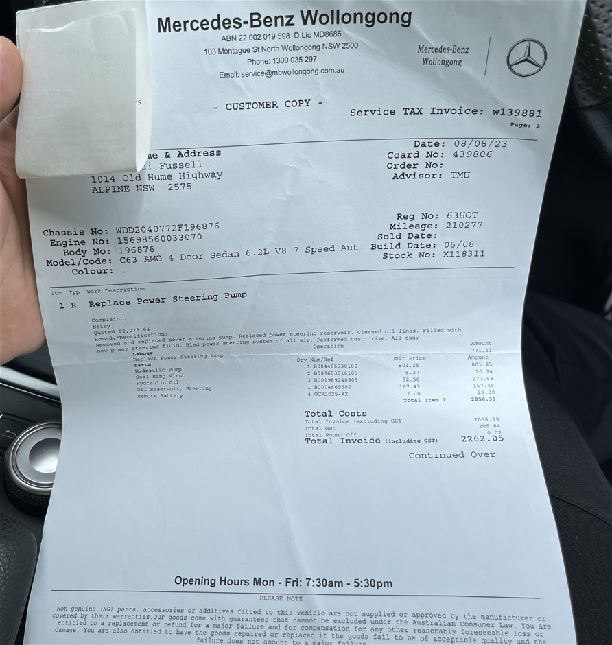 | Part of Sale | 2008 Mercedes Benz C63 AMG W204 Automatic Sedan | ||||||||||||||||