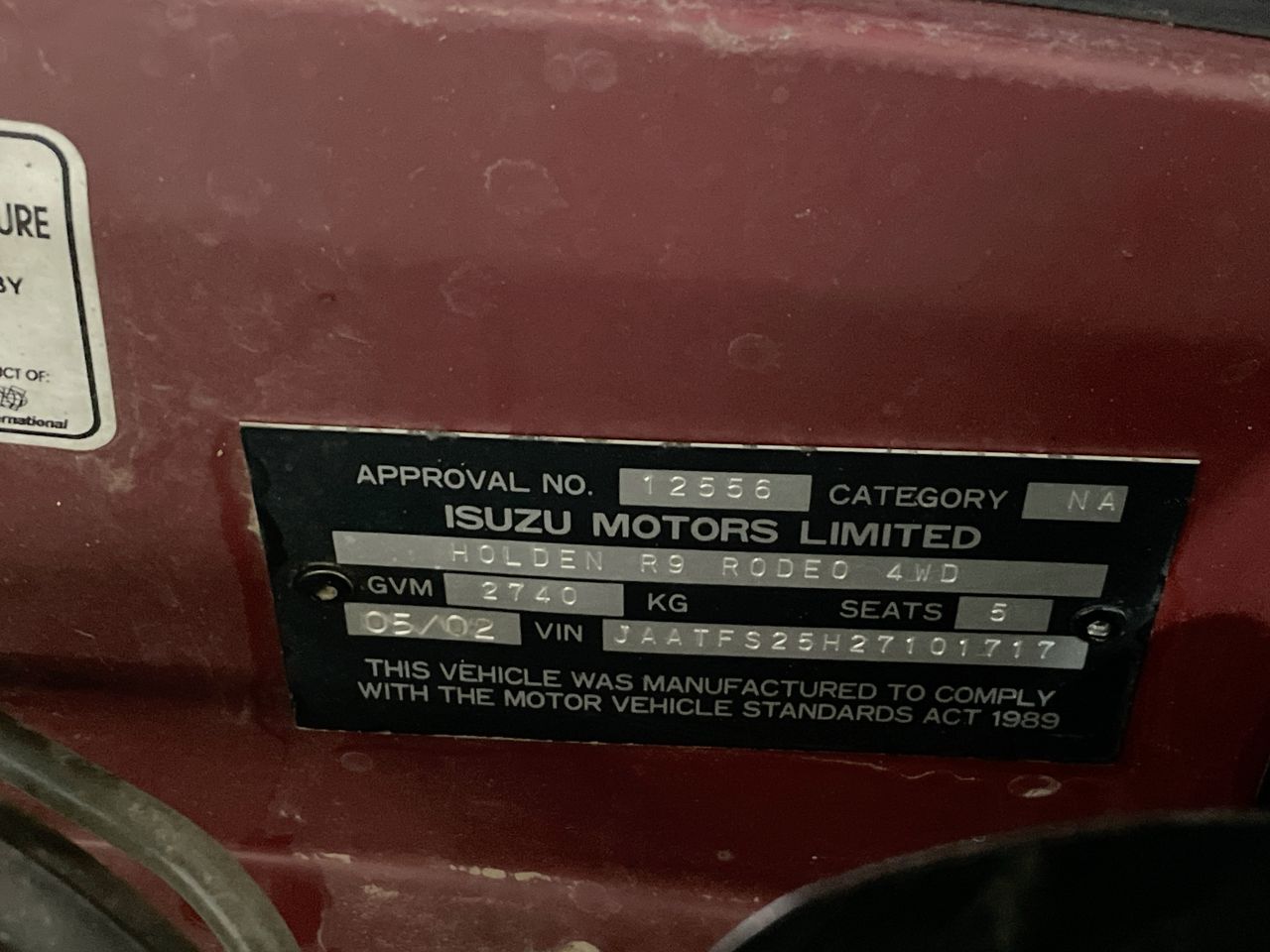 | Part of Sale | 2002 Holden Rodeo LT (4x4) R9 Manual Dual Cab | ||||||||||||||||