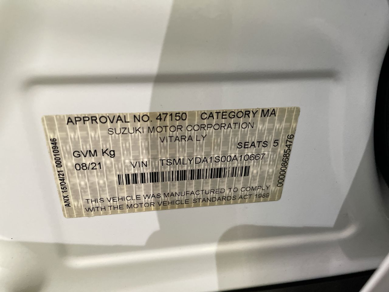 • VIN: TSMLYDA1S00A10667