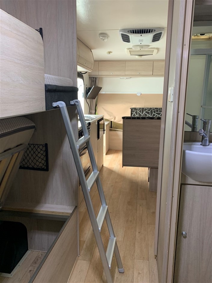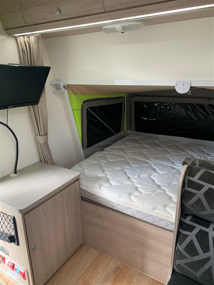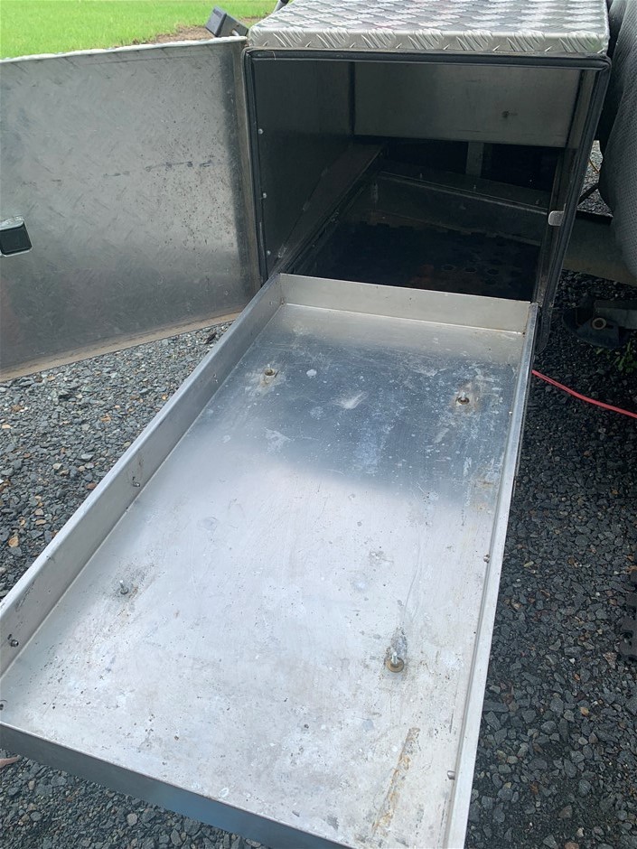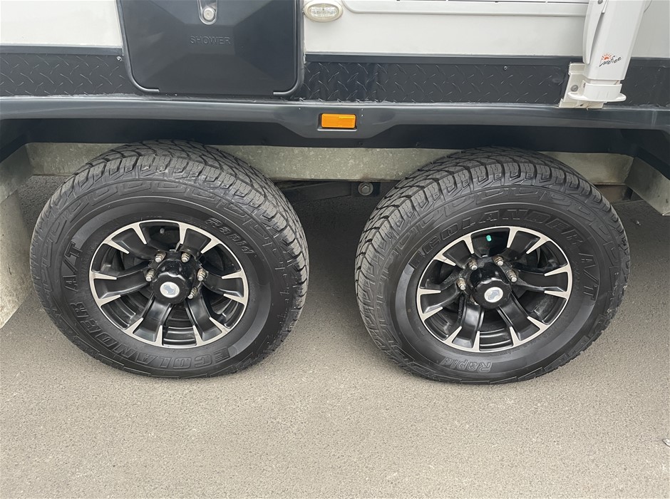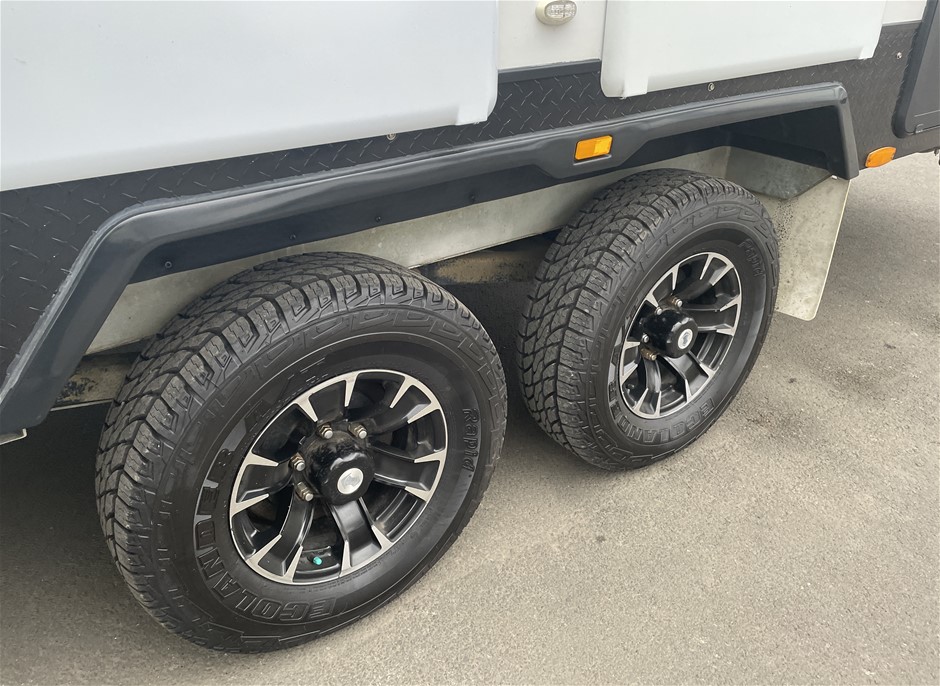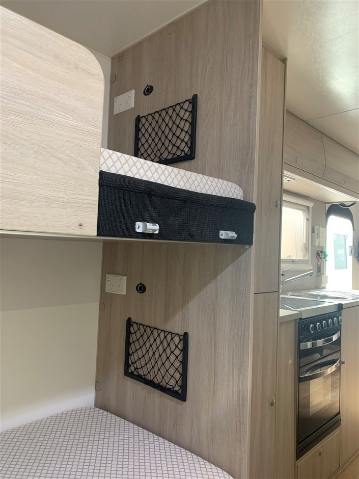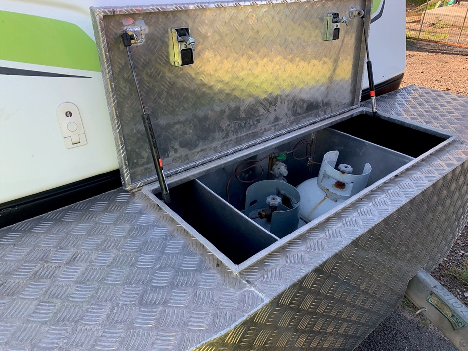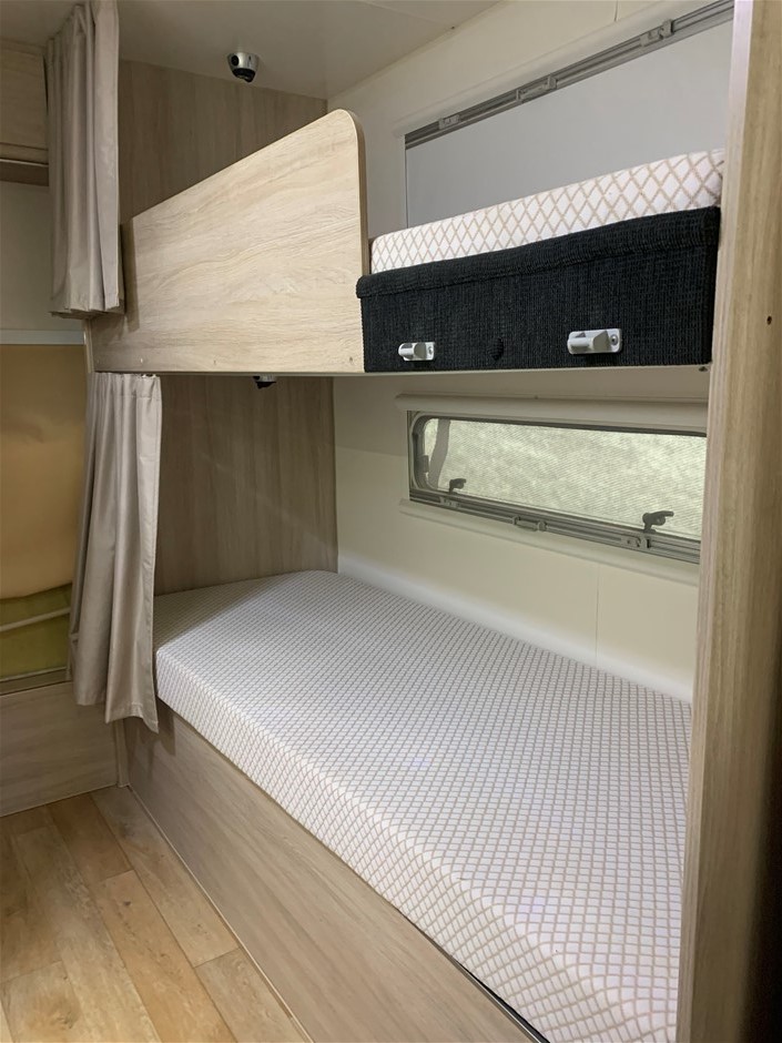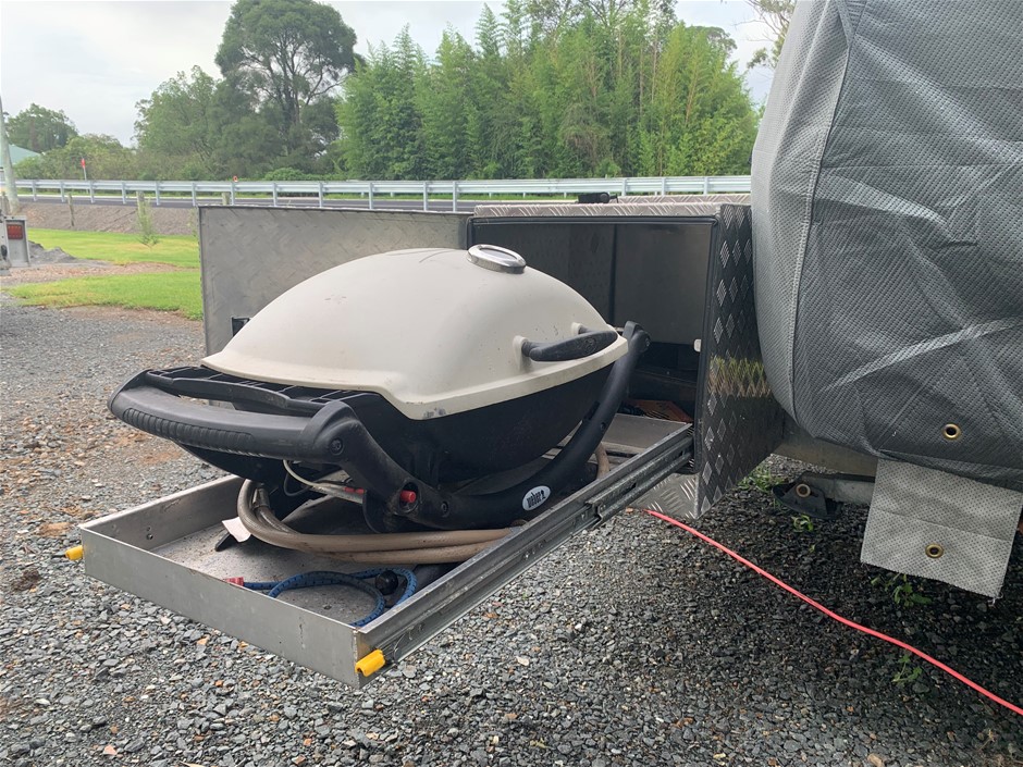 • Other Notes: 4x NEW Tyres, Slide Out Expanda, Bunk Beds, Expanda bed end storm cover flys keys labelled (see photo) including spare van key, keys to all hatches, latches & tables. The custom box on the drawbar includes a slide out tray to fit a Webber Q BBQ (not included)