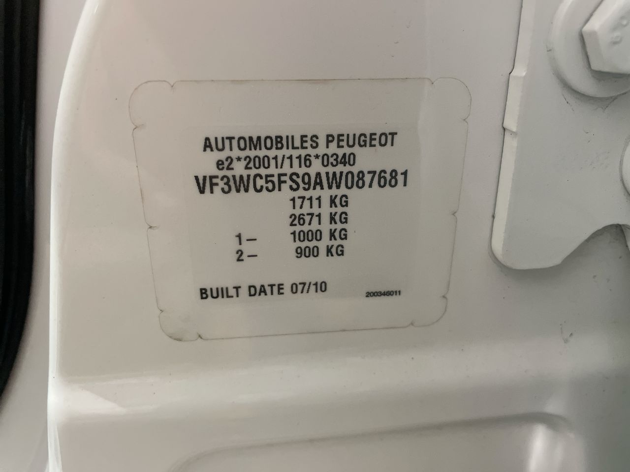 (SN:VF3WC5FS9AW087681) (287378-16)