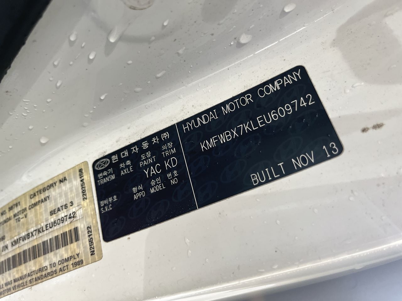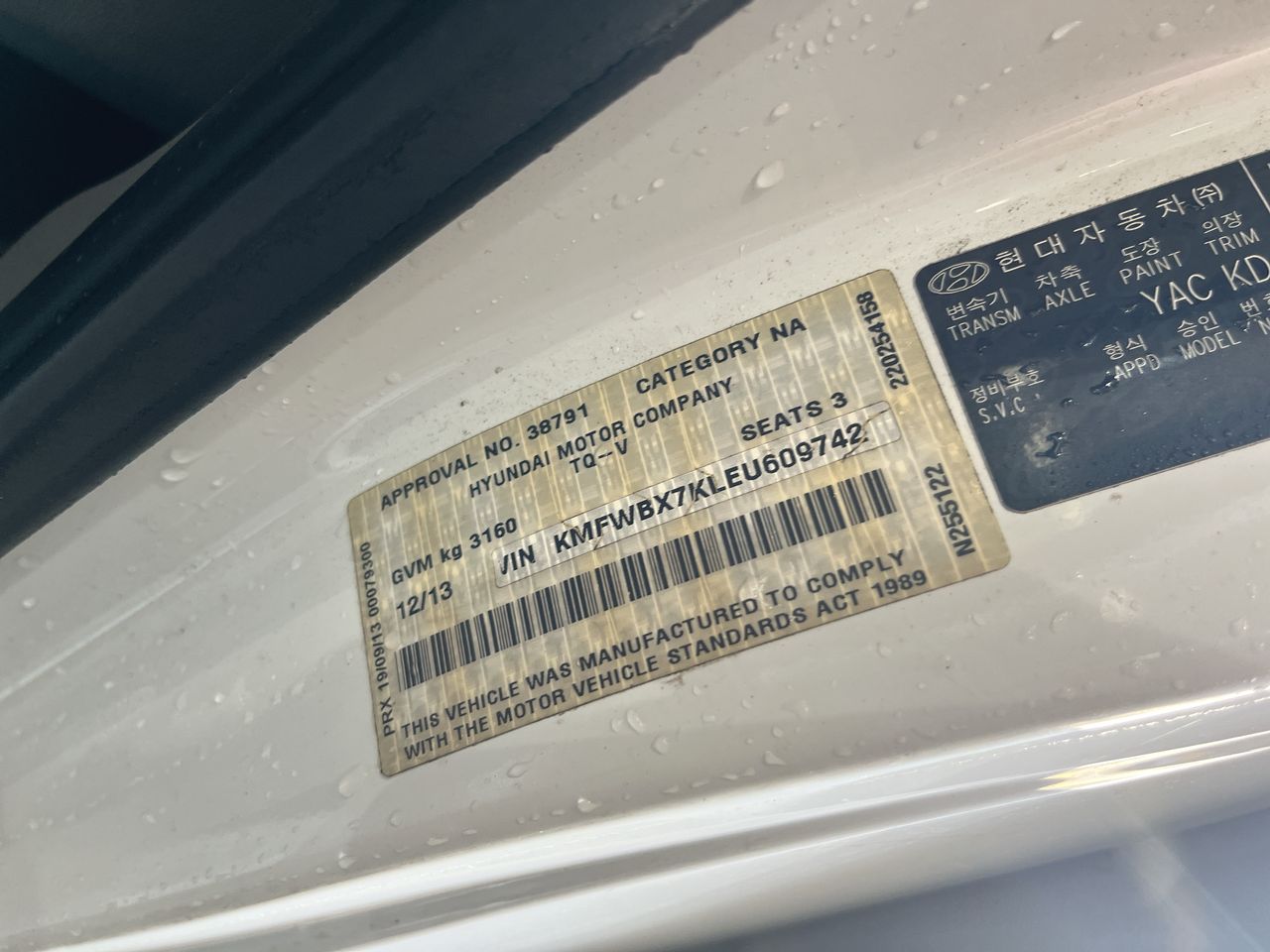 • VIN: KMFWBX7KLEU609742
