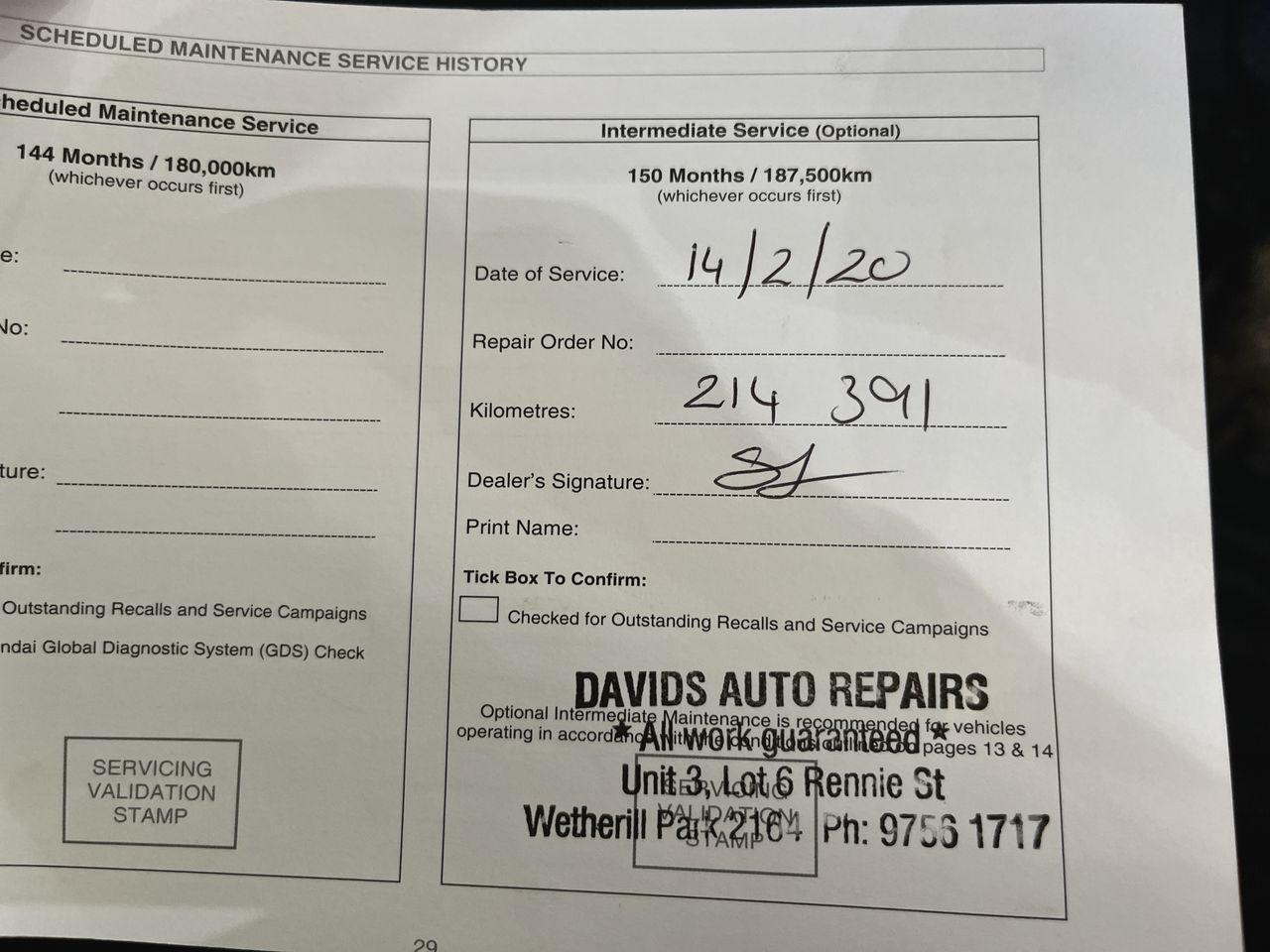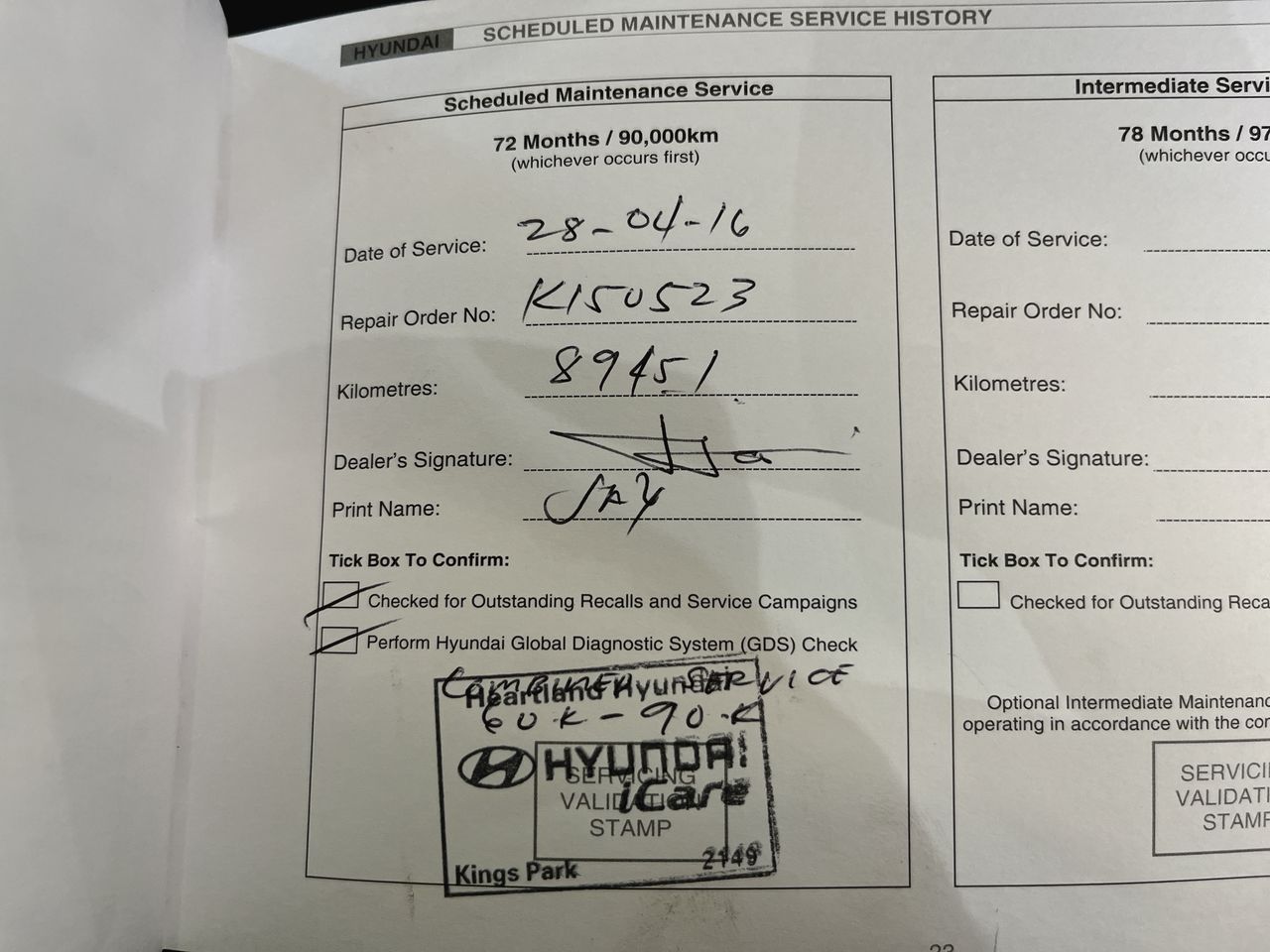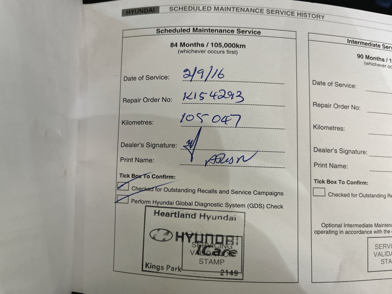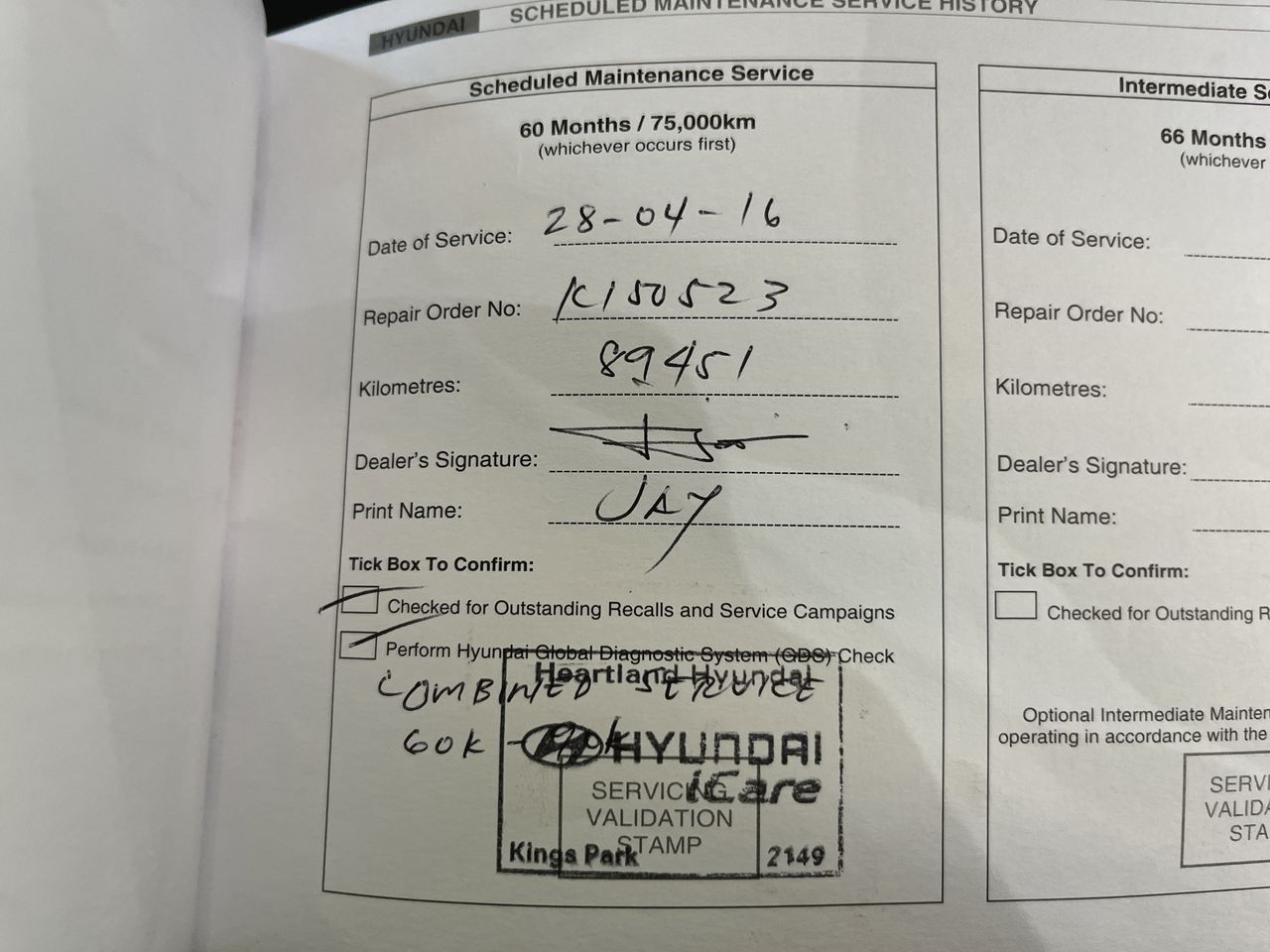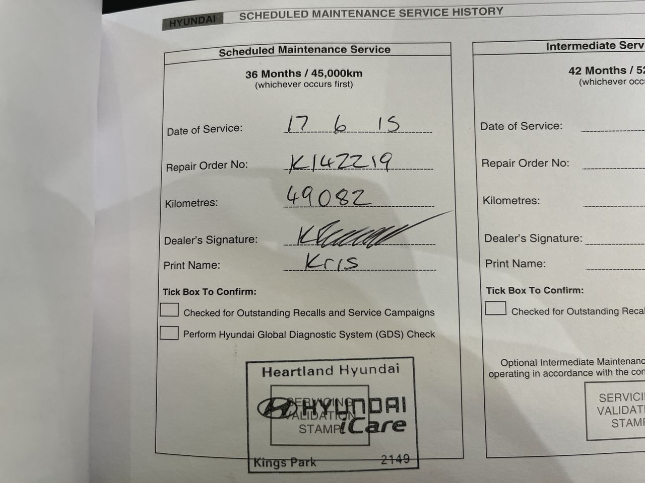 • Service History: Yes