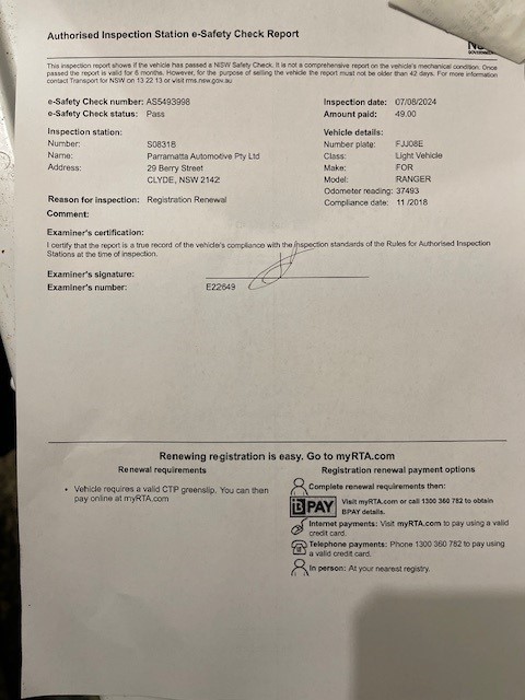 • Vehicle inspection is available at the dates and times stated above or phone New South Wales Auto Team on