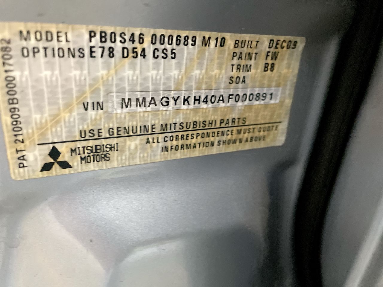 (SN:MMAGYKH40AF000891) (312978-3)