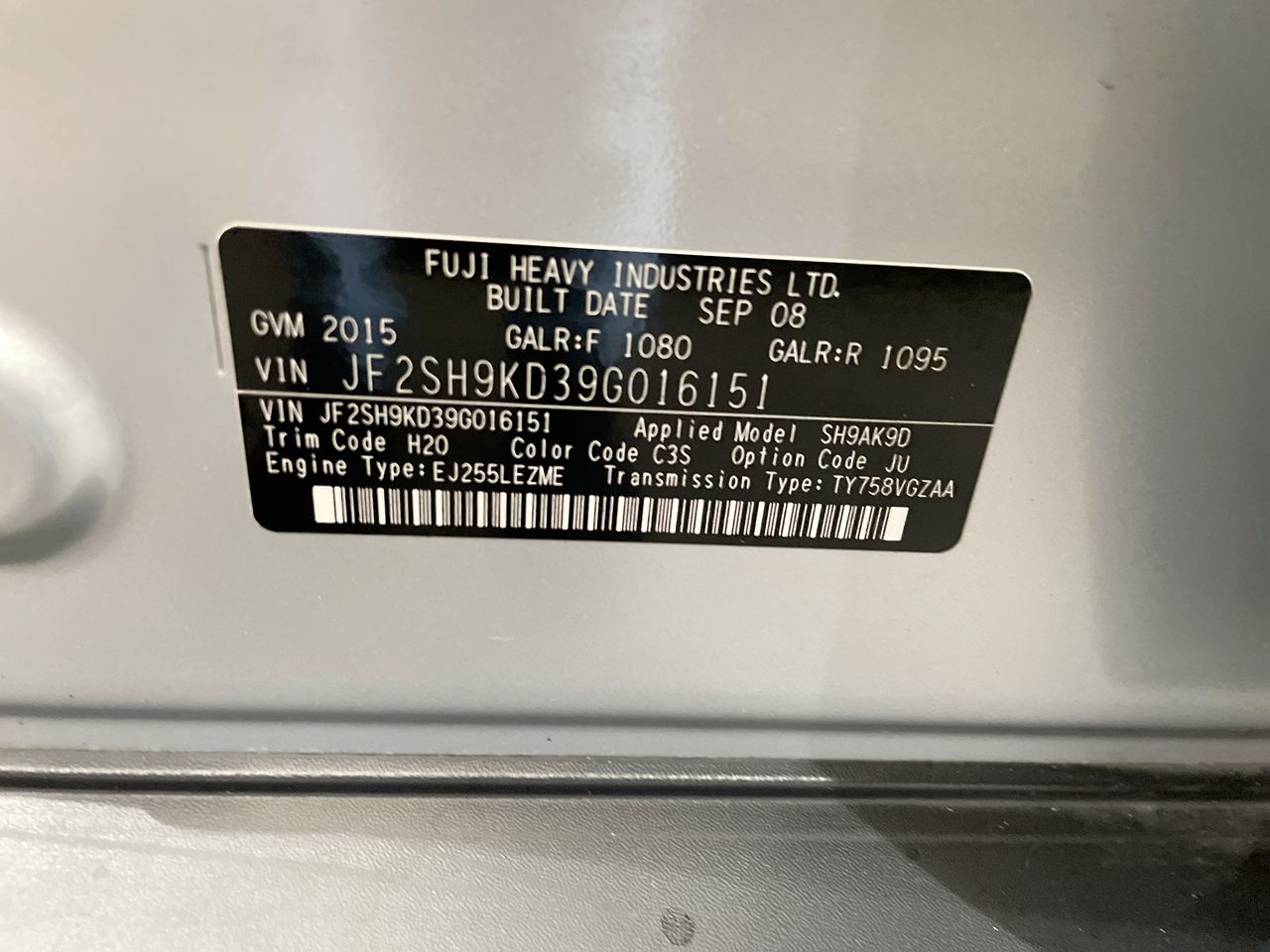 • VIN: JF2SH9KD39G016151
