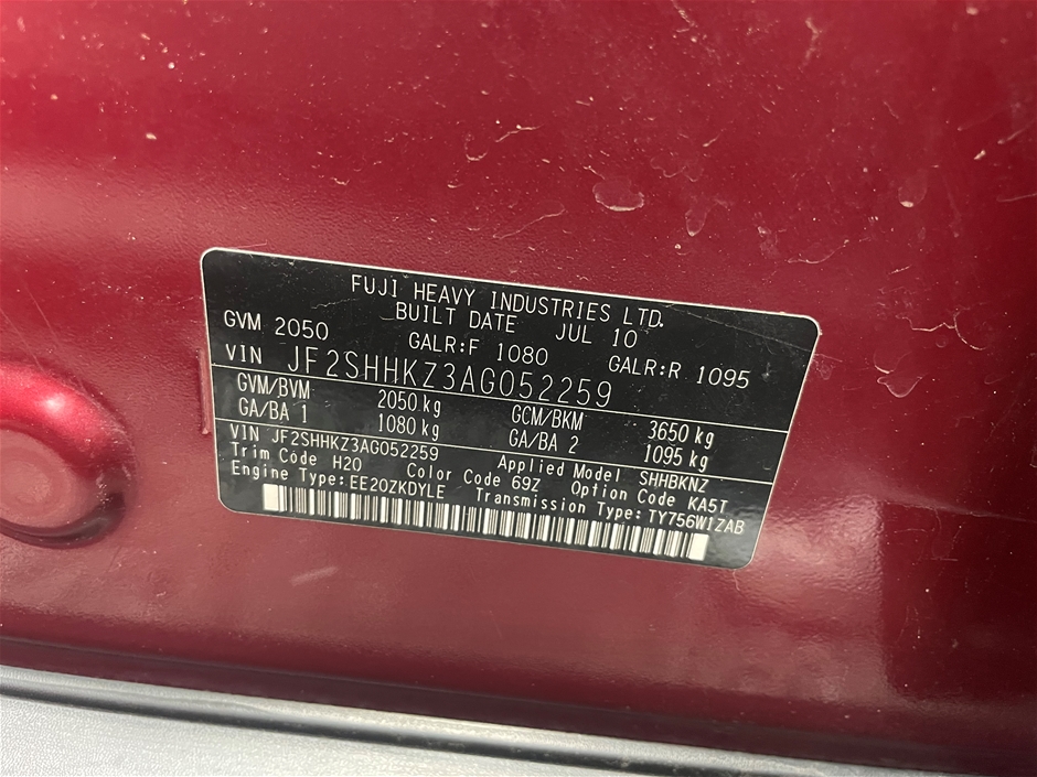 | Part of Sale | 2010 Subaru Forester 2.0D S3 Turbo Diesel Manual Wagon | ||||||||||||||