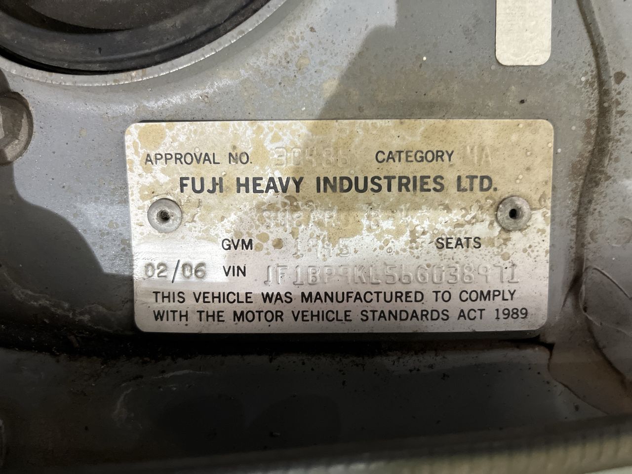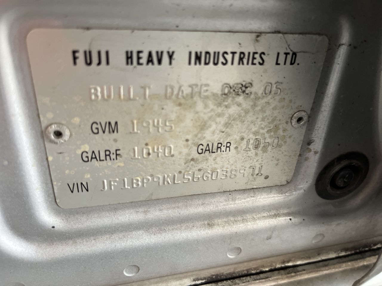 • VIN: JF1BP9KL56G038971