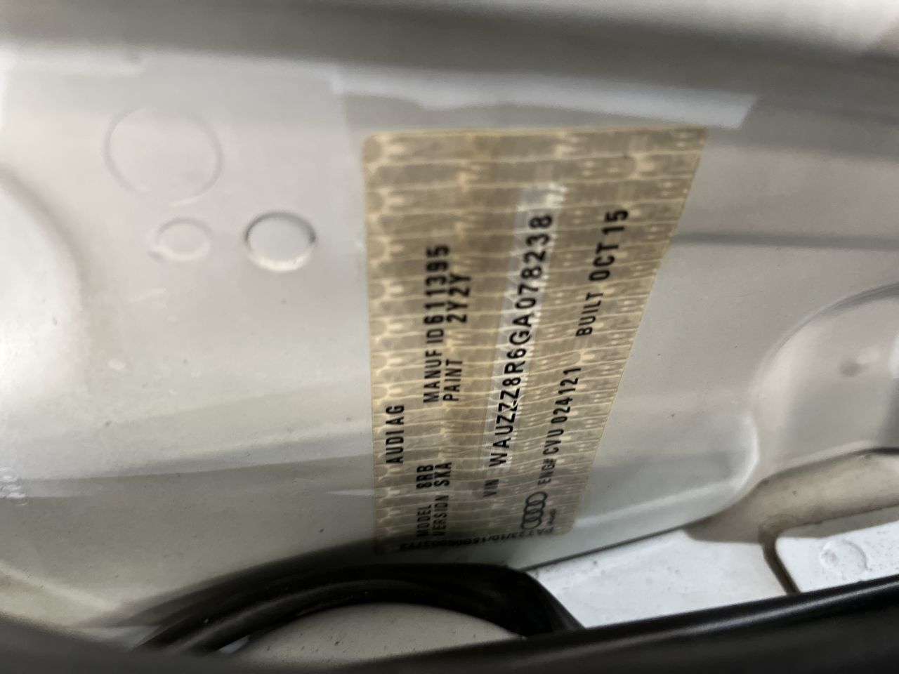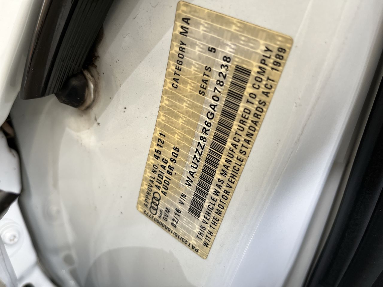 (SN:WAUZZZ8R6GA078238) (281310-5)