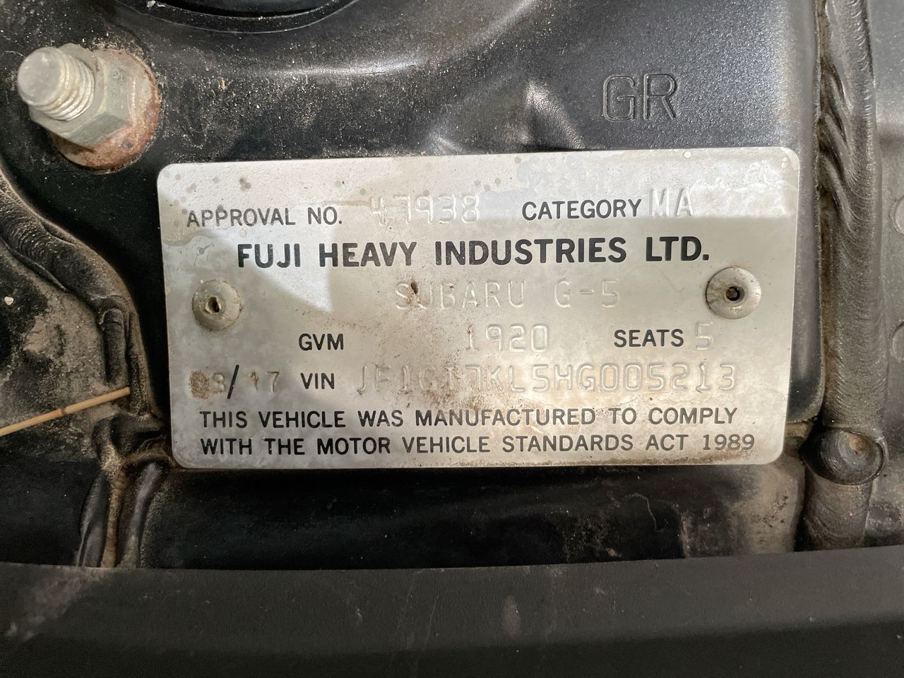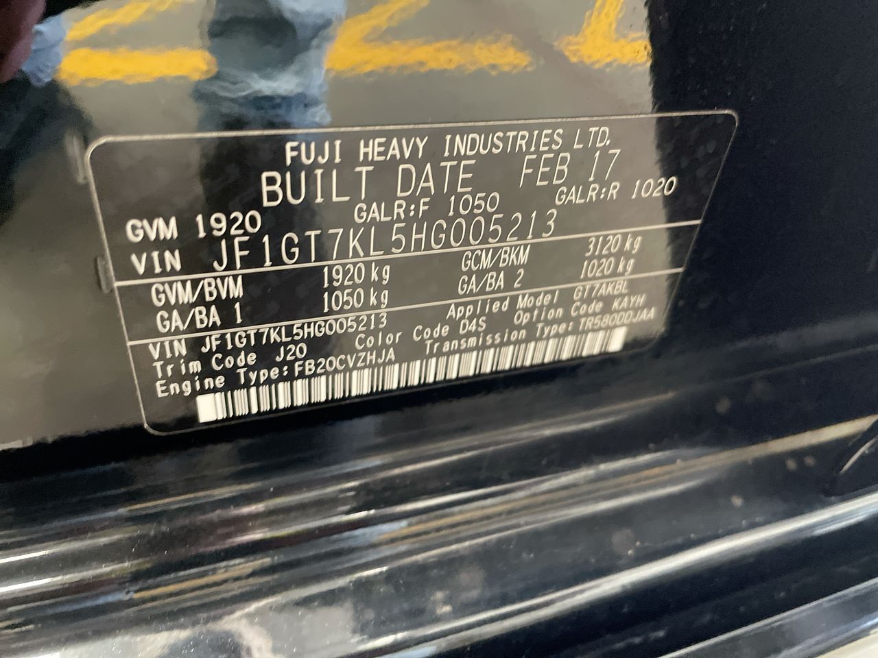 • VIN: JF1GT7KL5HG005213