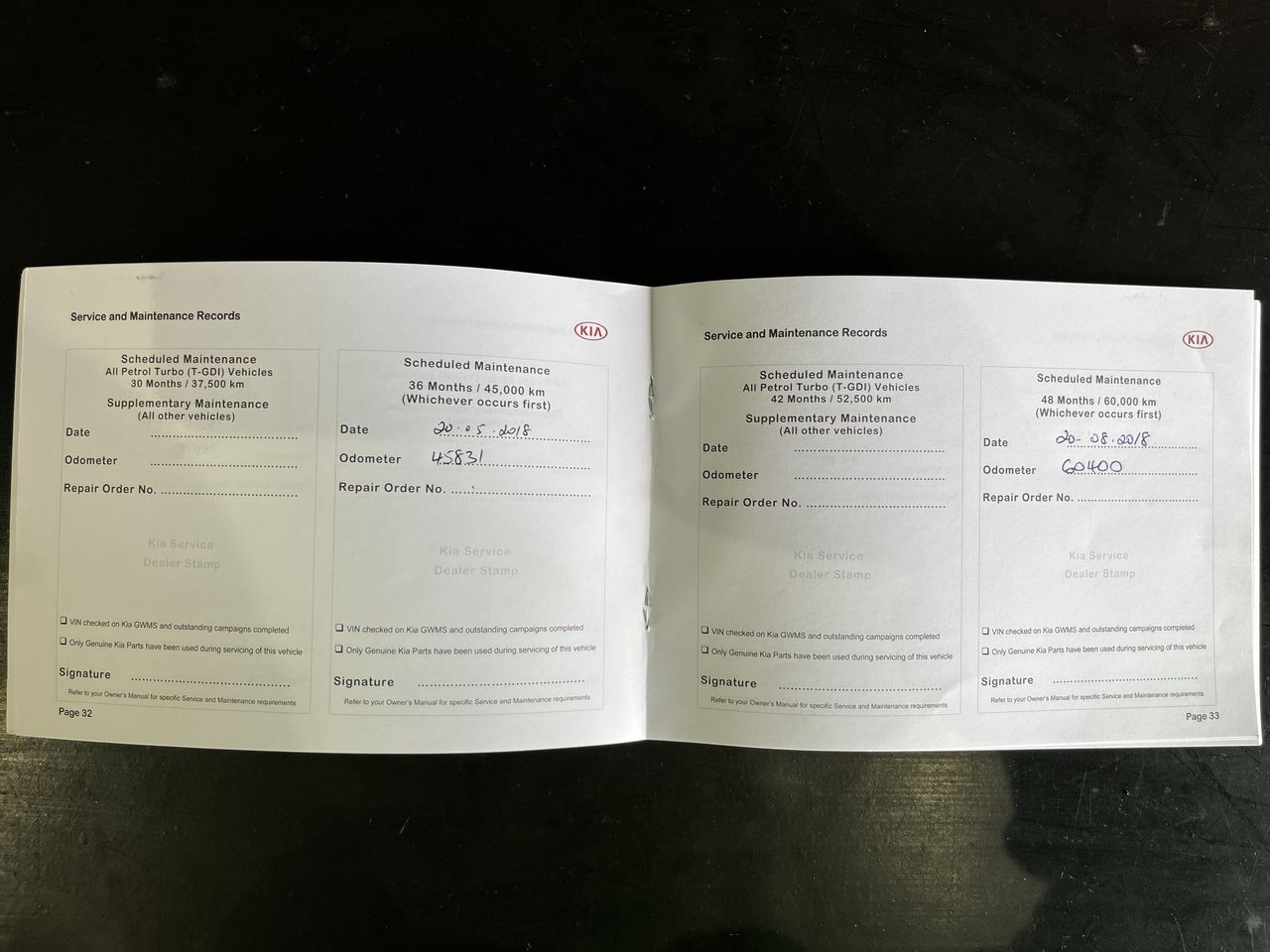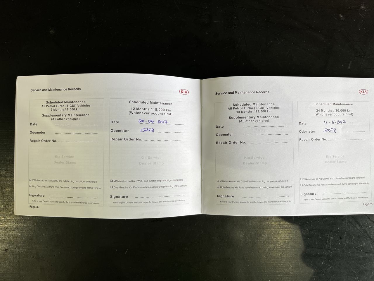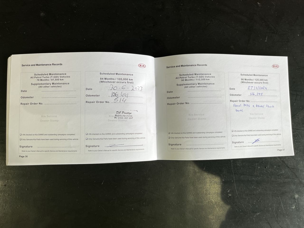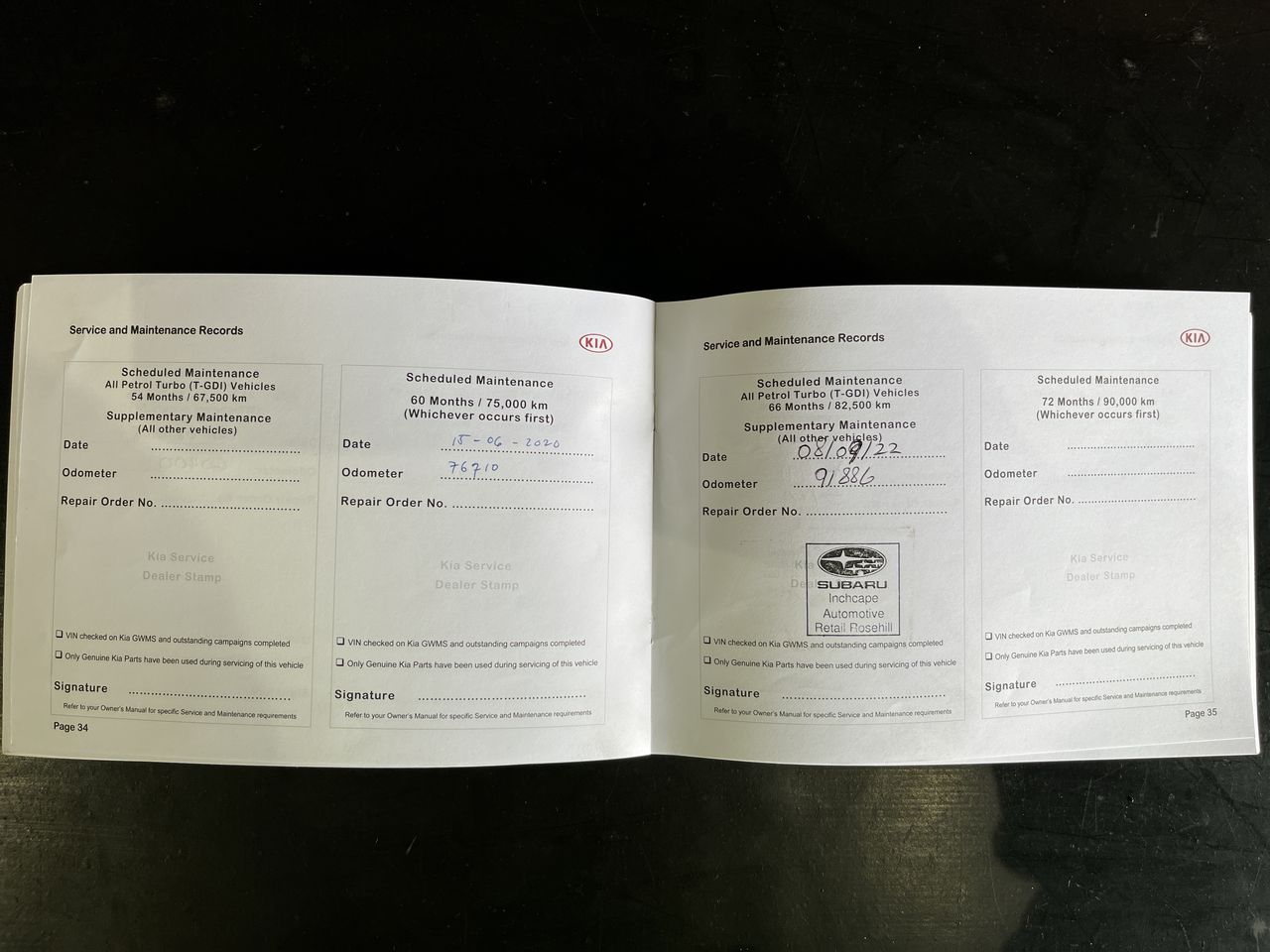• Dents or marks on body consistent with age and kilometres.