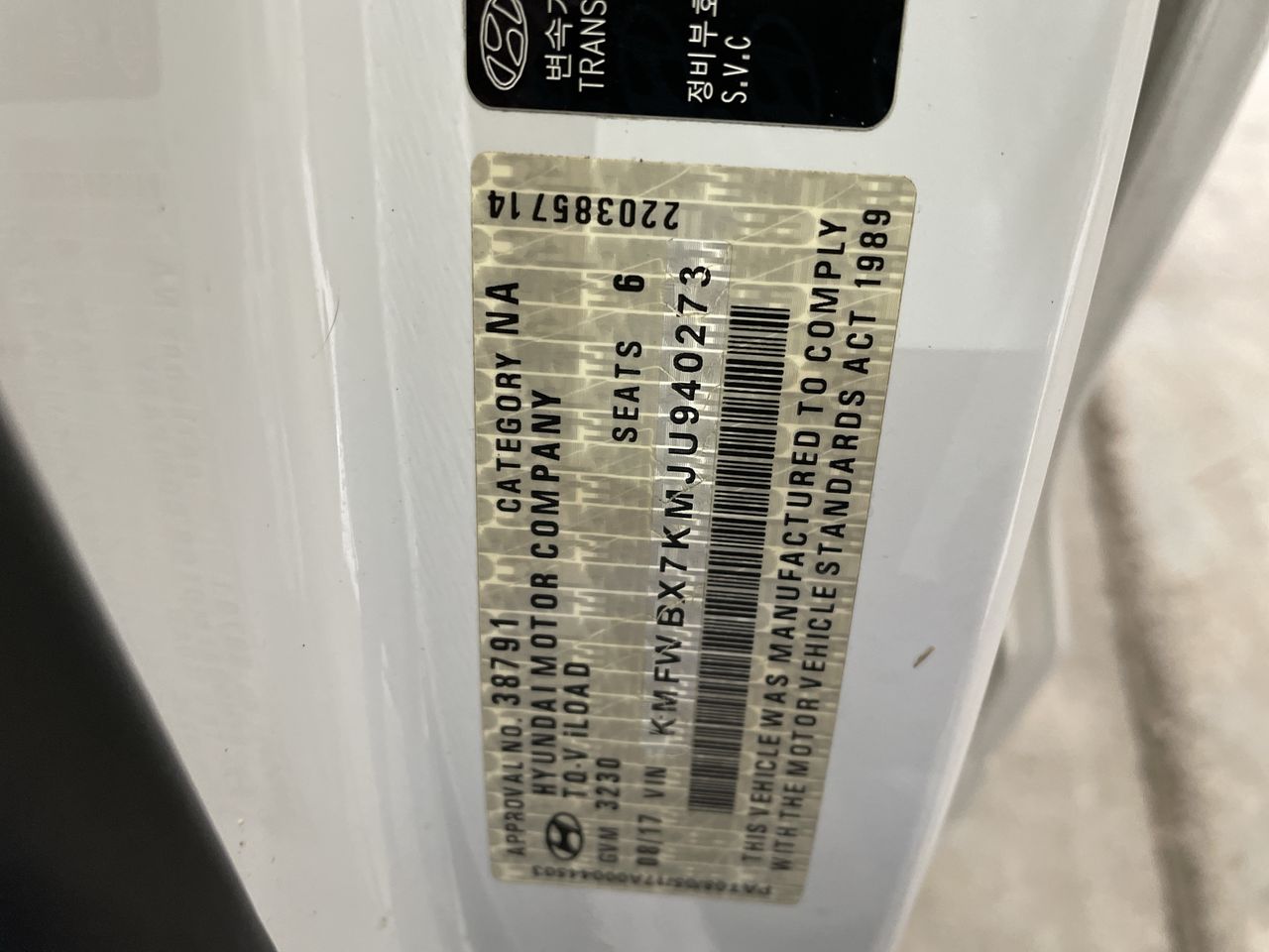 (SN:KMFWBX7KMJU940273) (323994-1)