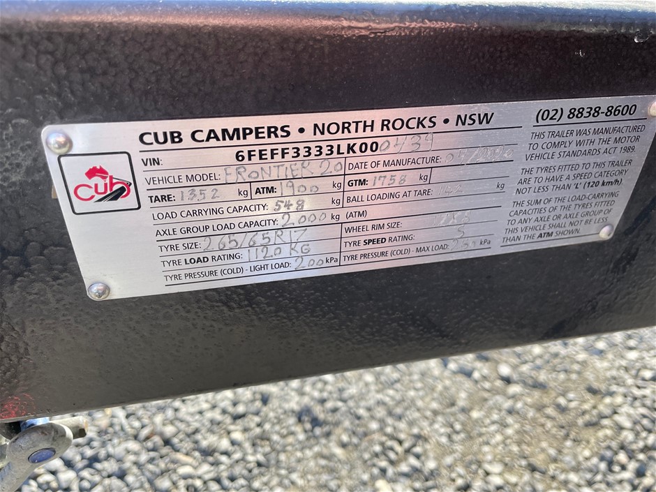 Part of Sale 2020 Cub Frontier Camper Trailer