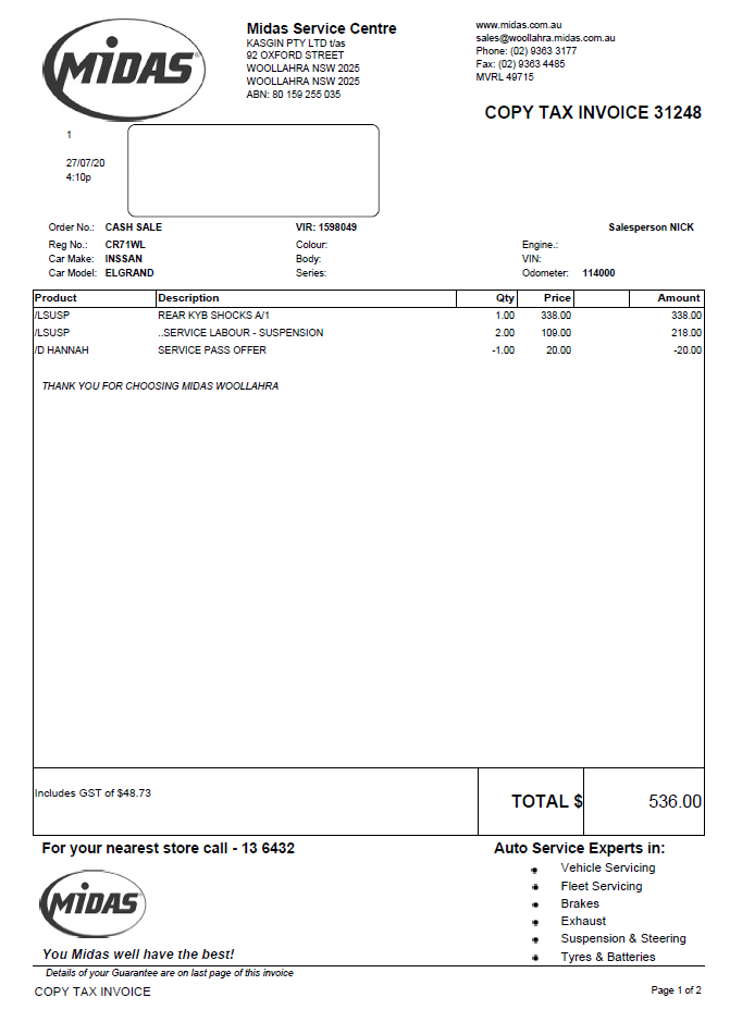 | Sales Support | NSW Auto or (p) 1300 064 978 | ||||||||||||||