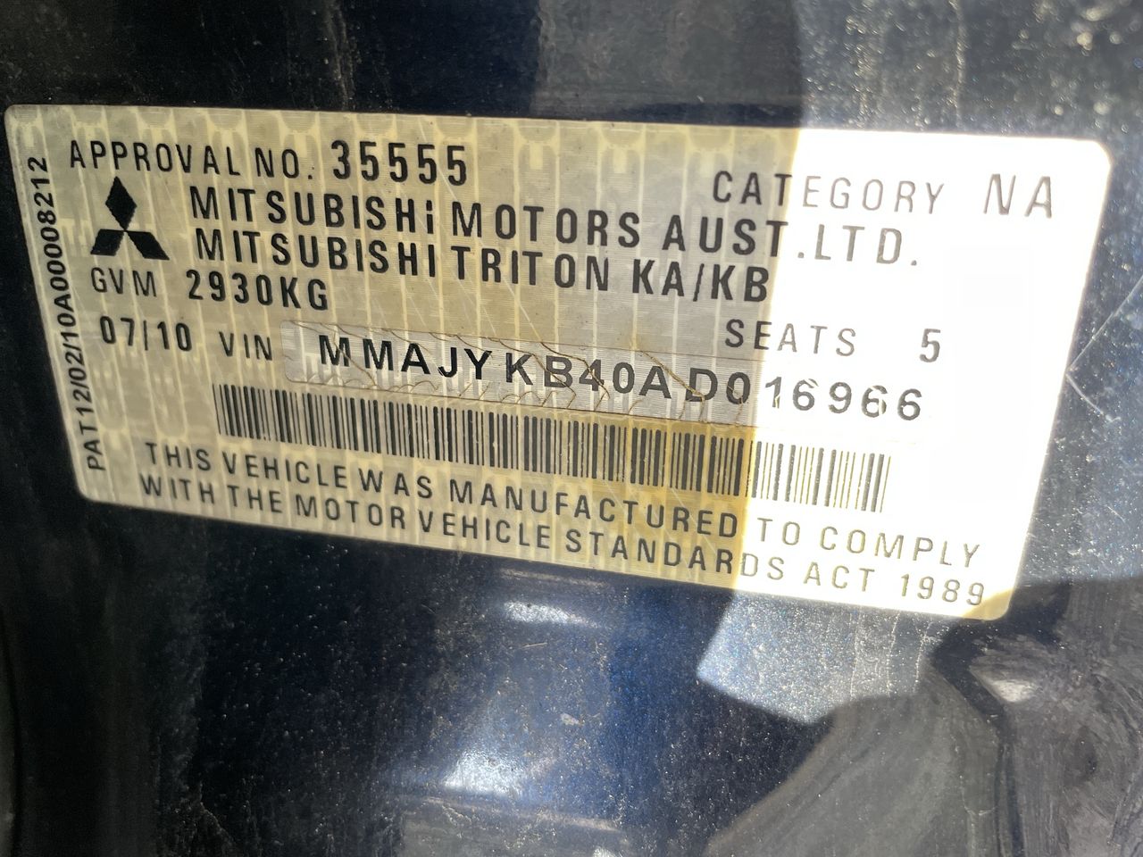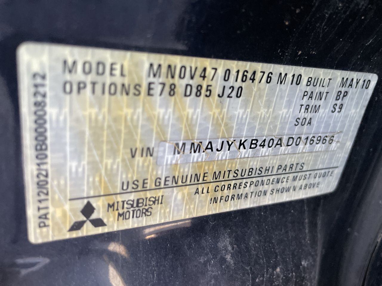 • VIN: MMAJYKB40AD016966